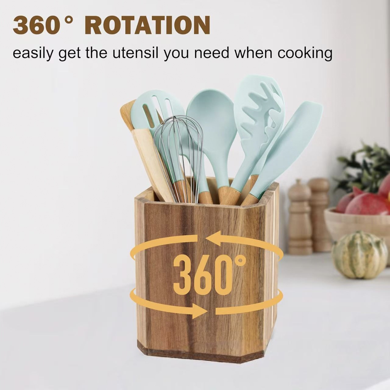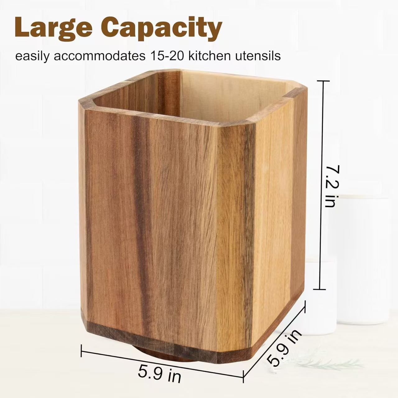 국경 나무 식기 상자 부엌 나이프와 포크 저장 상자 360 바닥 회전 저장 상자 데스크탑 디스플레이 나무 상자