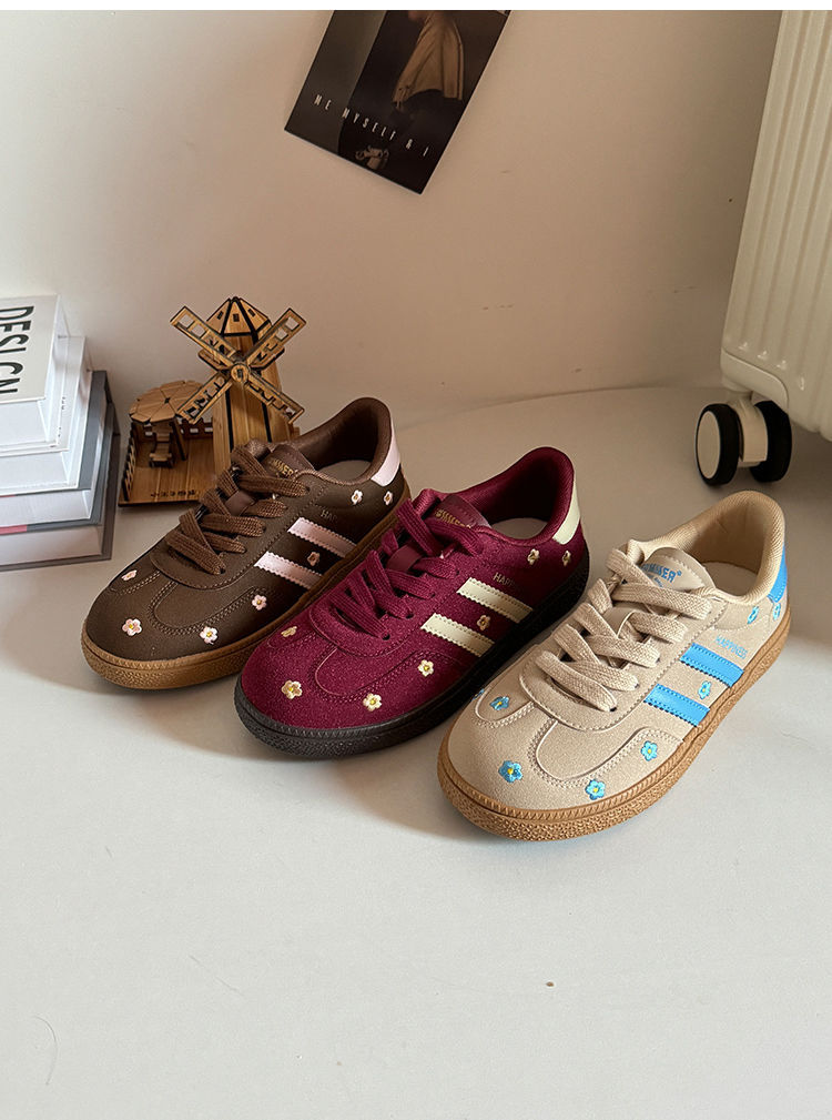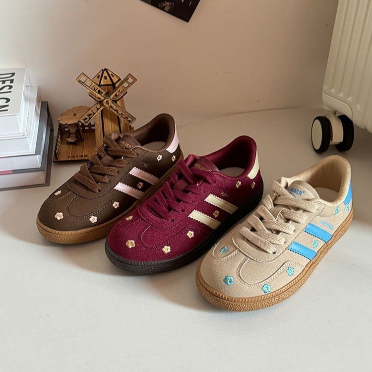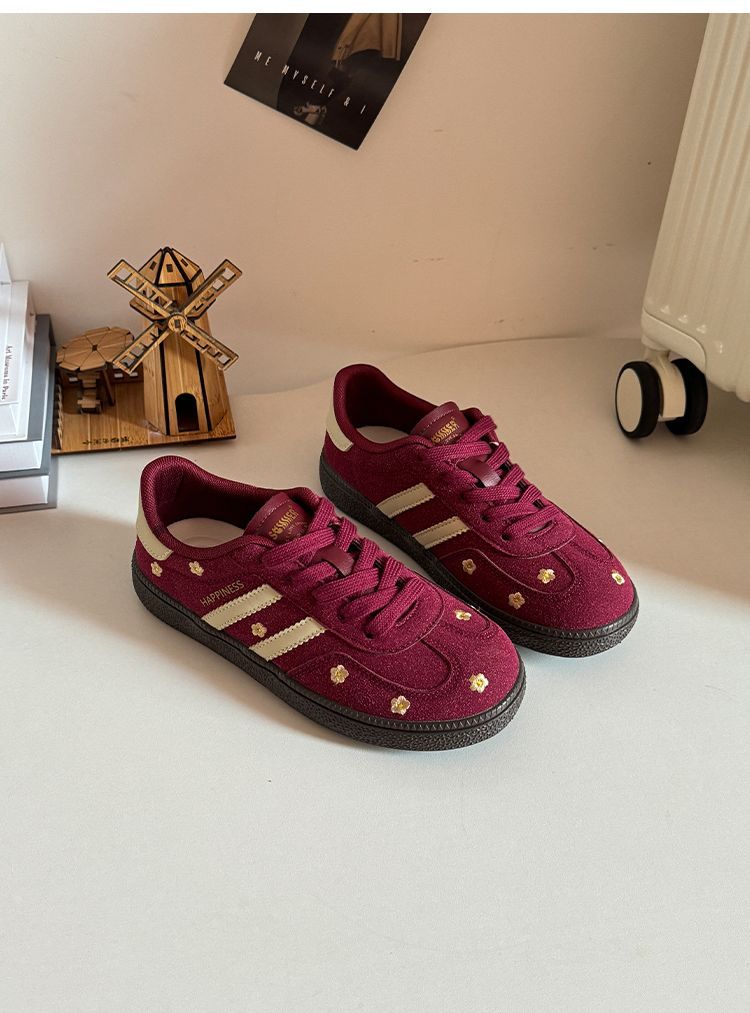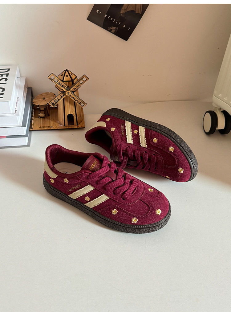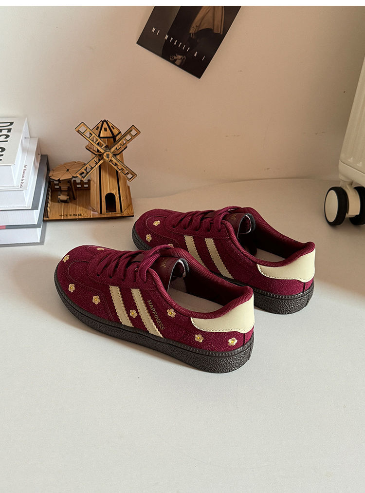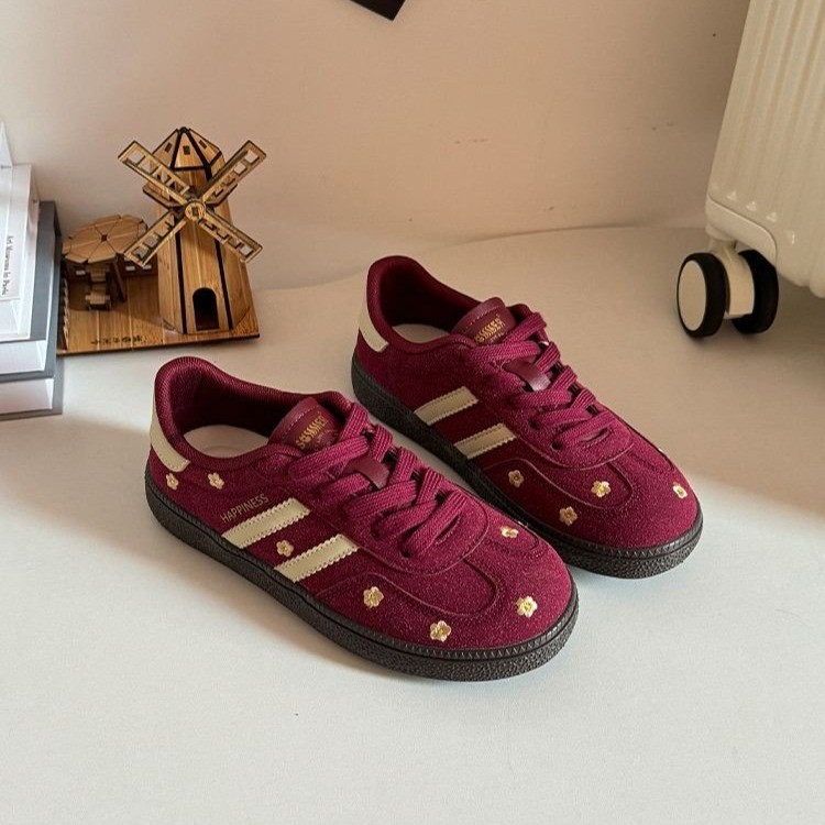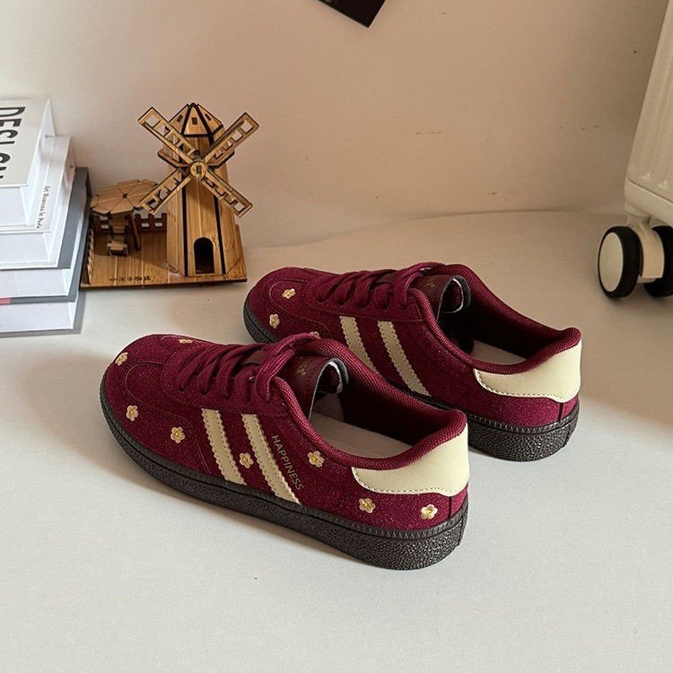 Xi 삼촌의 작은 꽃 자수 훈련 신발 여성의 2025 봄 새로운 복고풍 빨간 신발 캐주얼 운동화