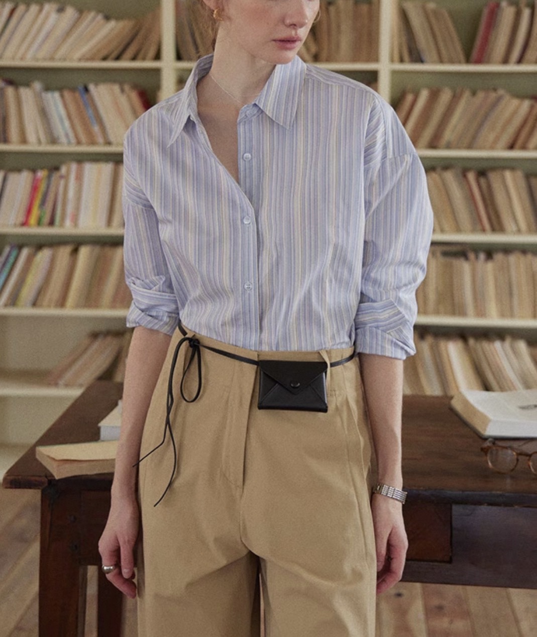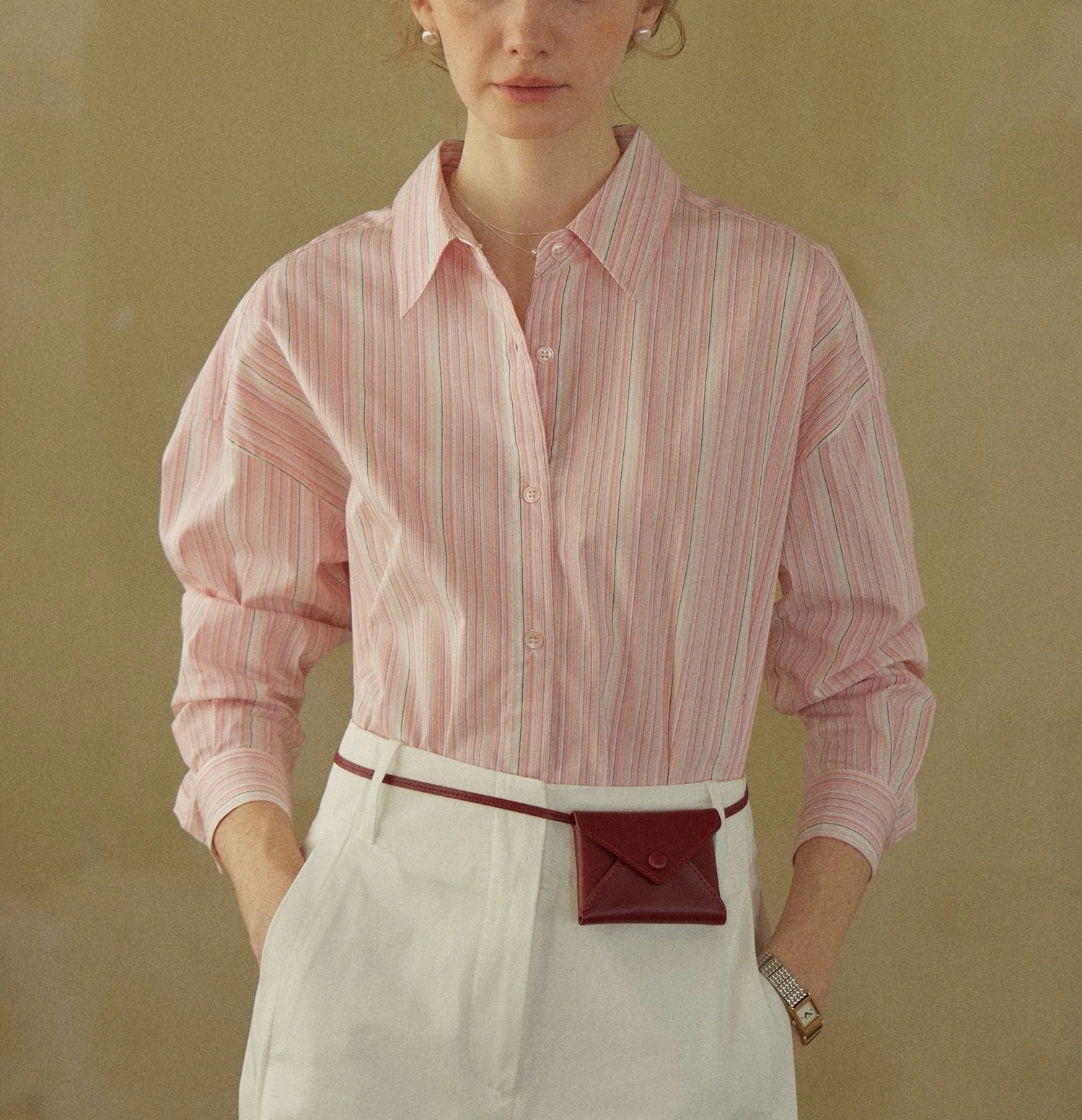클린 프레쉬 도파민 스트라이프 루즈 라펠 셔츠 여성용 봄 탑 에너제틱 블루 피치 파우더스토어 가기