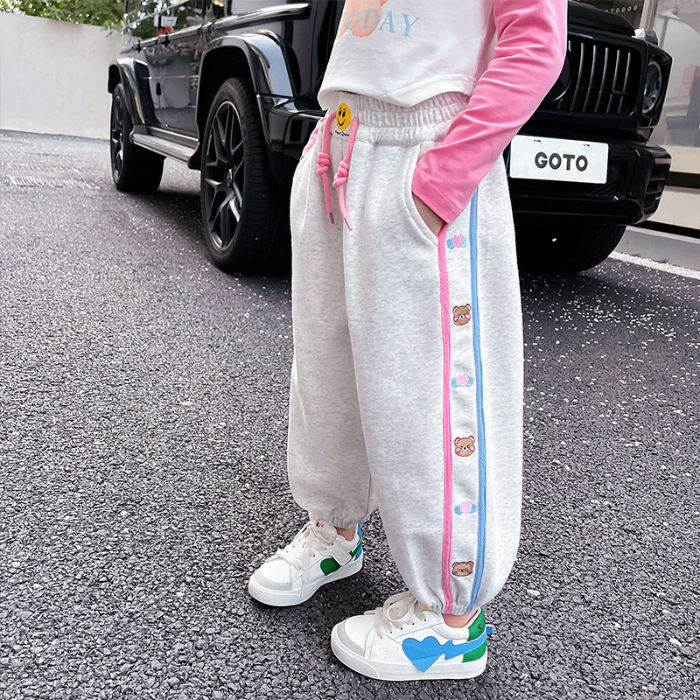소년과 소녀 캐주얼 바지 올 매치 봄과 가을 새로운 도착 귀여운 만화 스웨트 팬츠 스포츠 패션 웨스턴 스타일스토어 가기