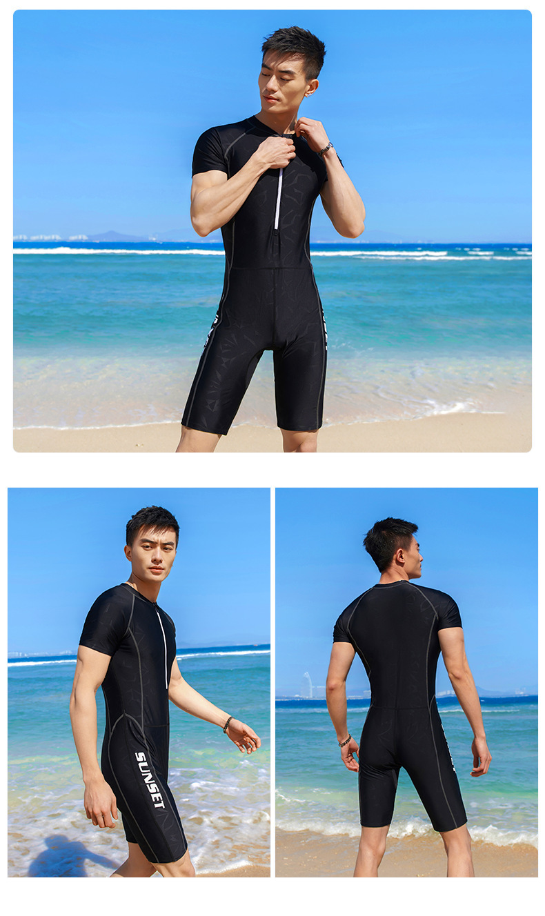 새로운 대외 무역 원피스 수영복 남자 레저 서핑 경주 증가 청소년 선 스크린 온천 남자 원피스 수영복스토어 가기