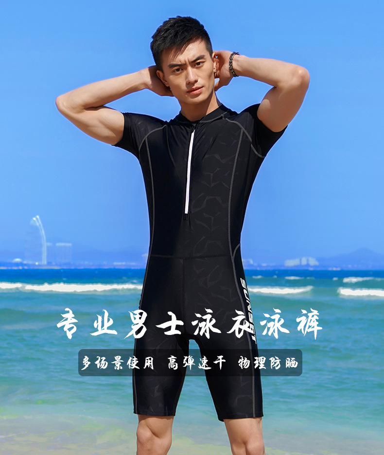 새로운 대외 무역 원피스 수영복 남자 레저 서핑 경주 증가 청소년 선 스크린 온천 남자 원피스 수영복
