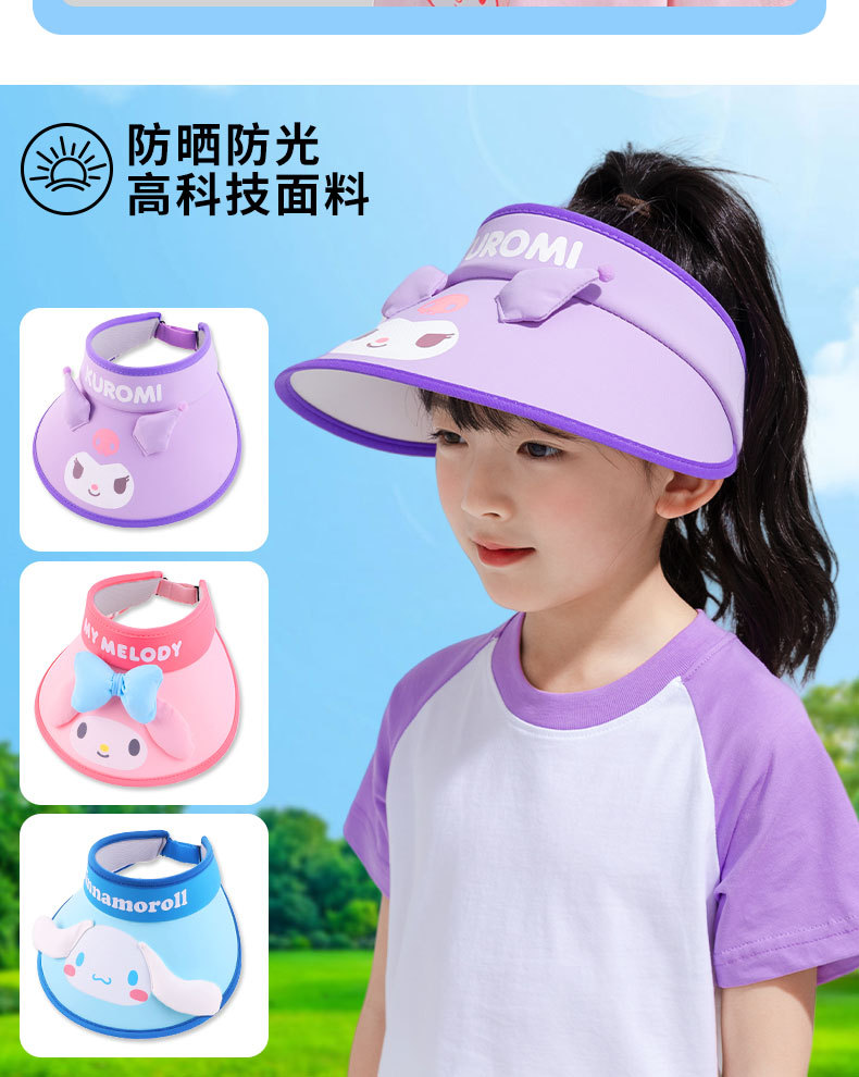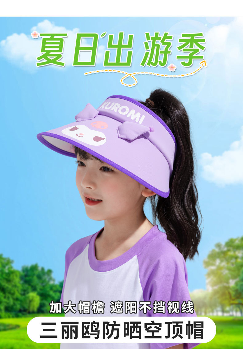 어린이 산리오 태양 모자 소녀 여름 안티 UV 태양 모자 어린 소녀의 접이식 머리 모자스토어 가기
