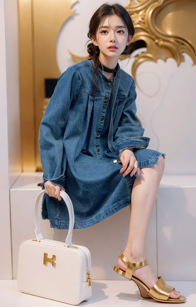 빈티지 활 데님 찾고 원피스 봄 휴일 스커트 긴 소매 틈새 원피스스토어 가기