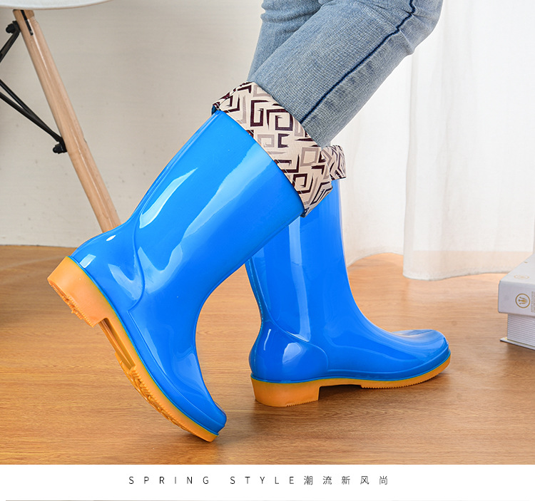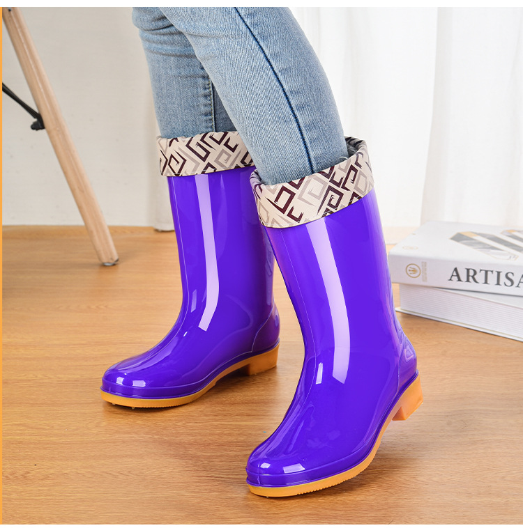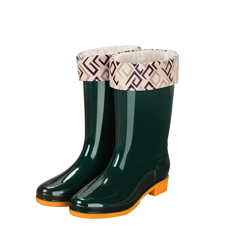 Pvc 중간 높은 성인 여성 장화 방수 미끄럼 방지 여성용 물 신발 야외 주방 작업 따뜻한 장화 도매스토어 가기