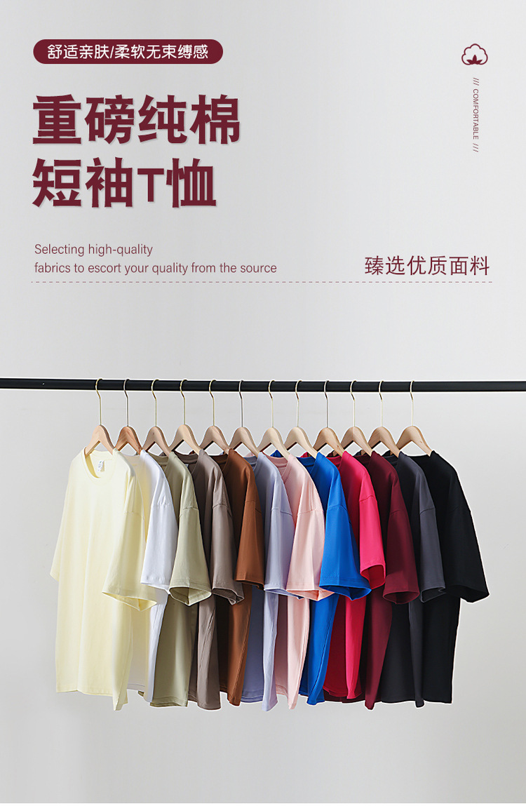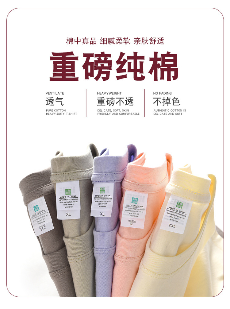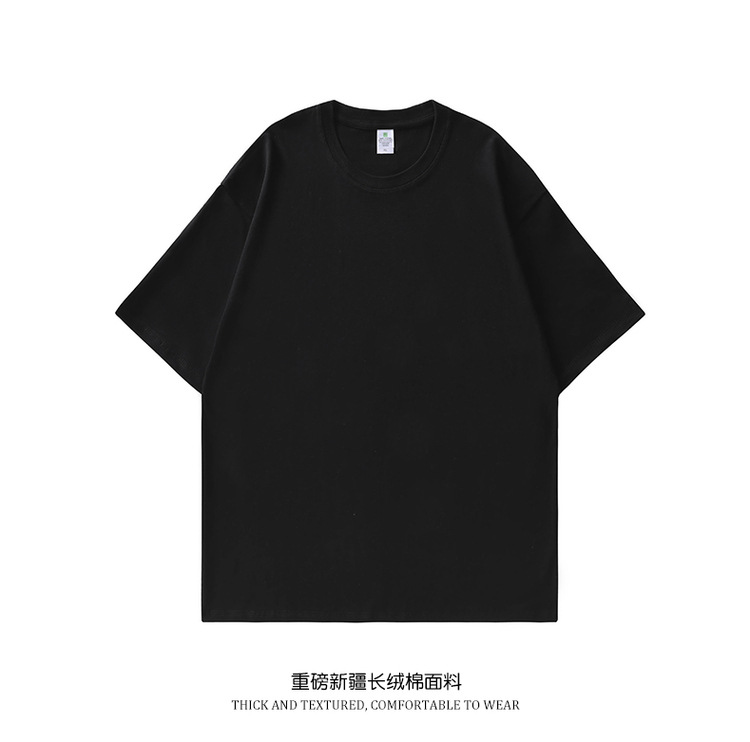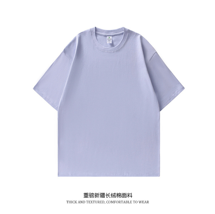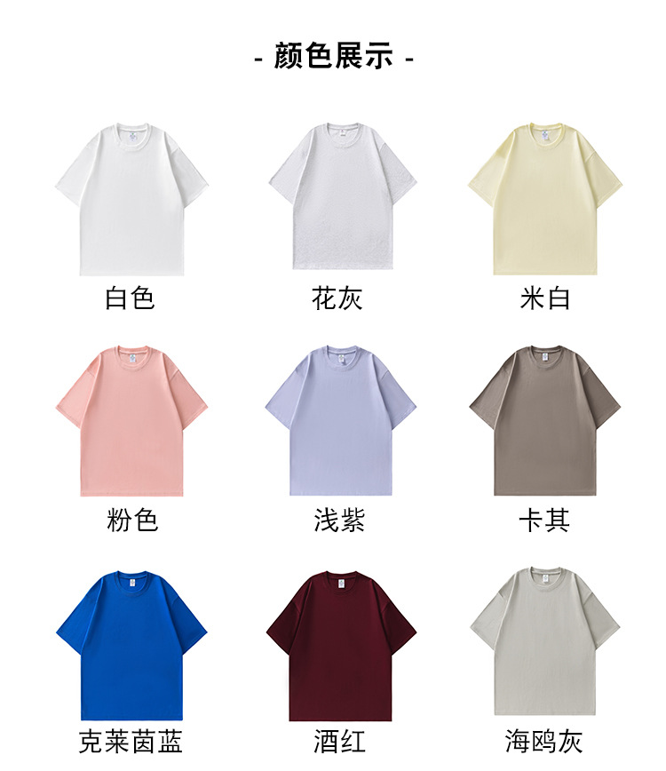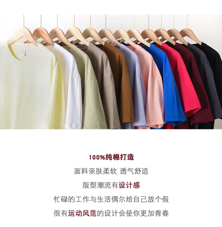 230g 둥근 목 짧은 소매 남성 여름 새로운 느슨한 패션 어깨 소매 남성과 여성의 티셔츠 단색 탑스토어 가기