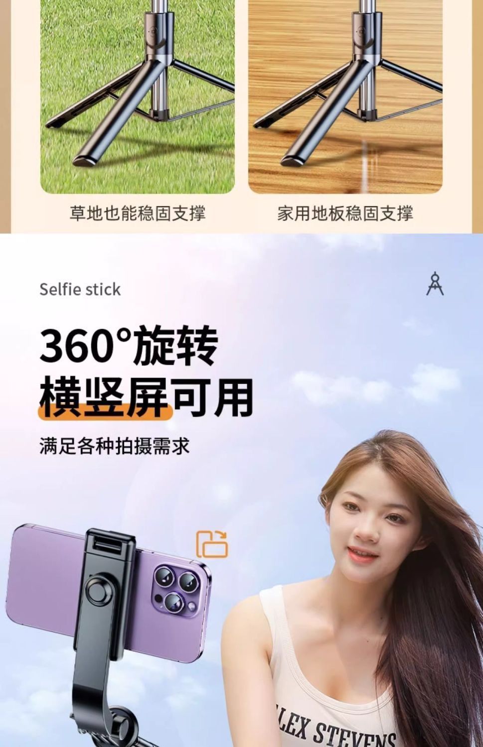 새로운 휴대 전화 셀카 스틱 삼각대 휴대용 바닥 접이식 여행 블루투스 원격 제어 셀카 도구 휴대용스토어 가기