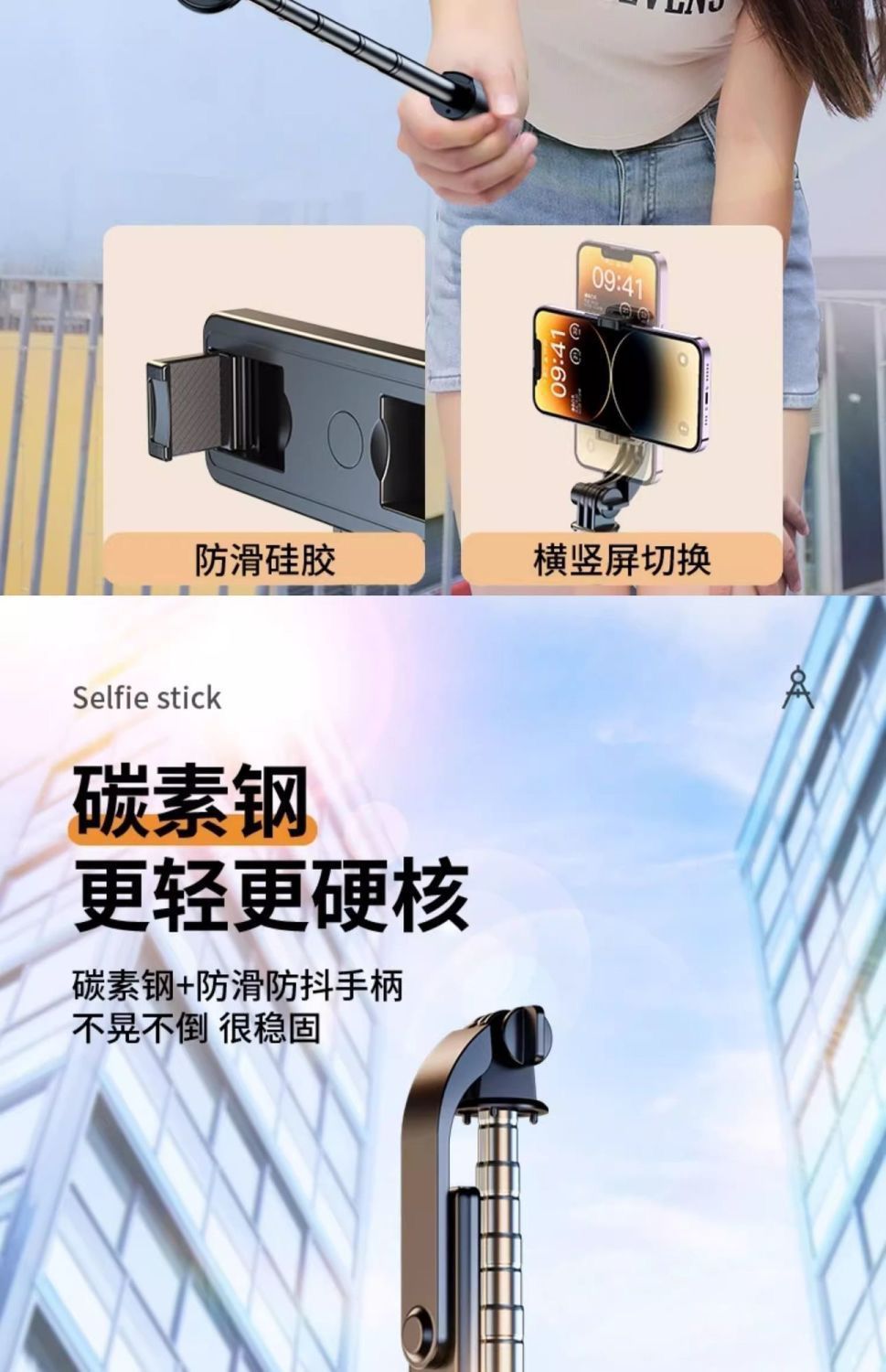 • [다크나이트 블랙] 일체형 폴딩-[1.7m 확장 버전] 가로 및 세로 촬영 + 블루투스 리모컨 + 강화된 손떨림 방지