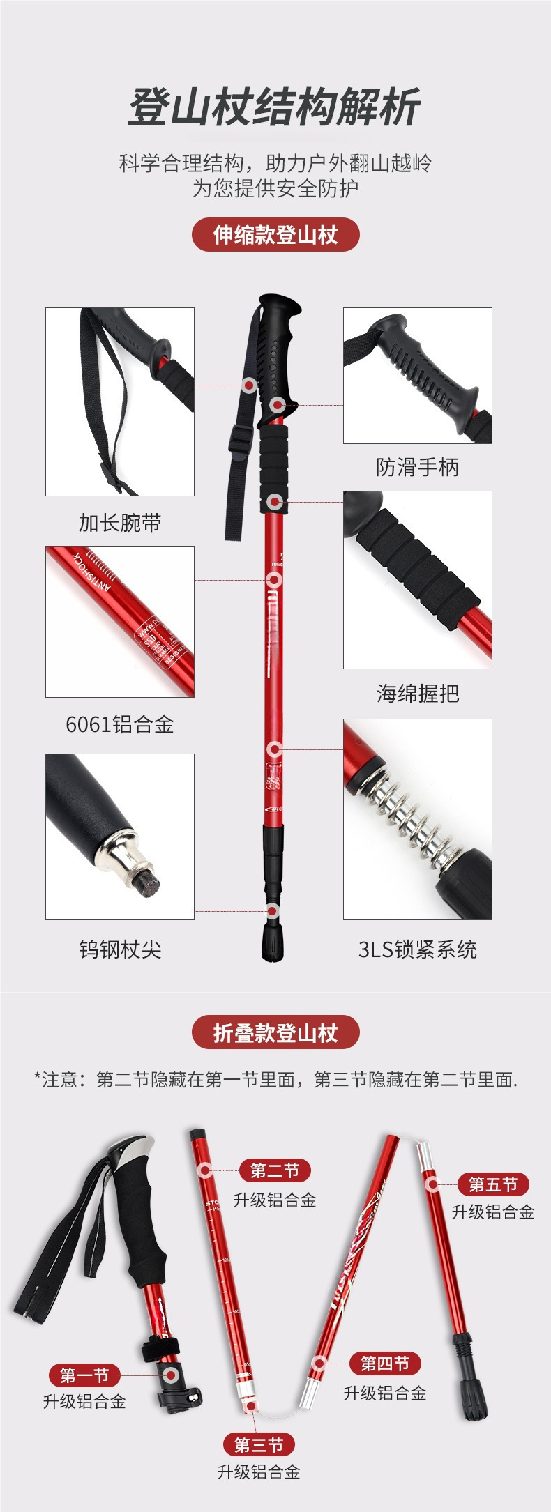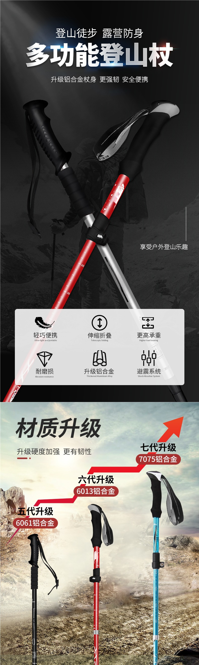 Guoyu 등반 스틱 접히는 개폐식 초경량 지팡이 남녀 안티 바디 야외 하이킹 장비 등반 유물스토어 가기
