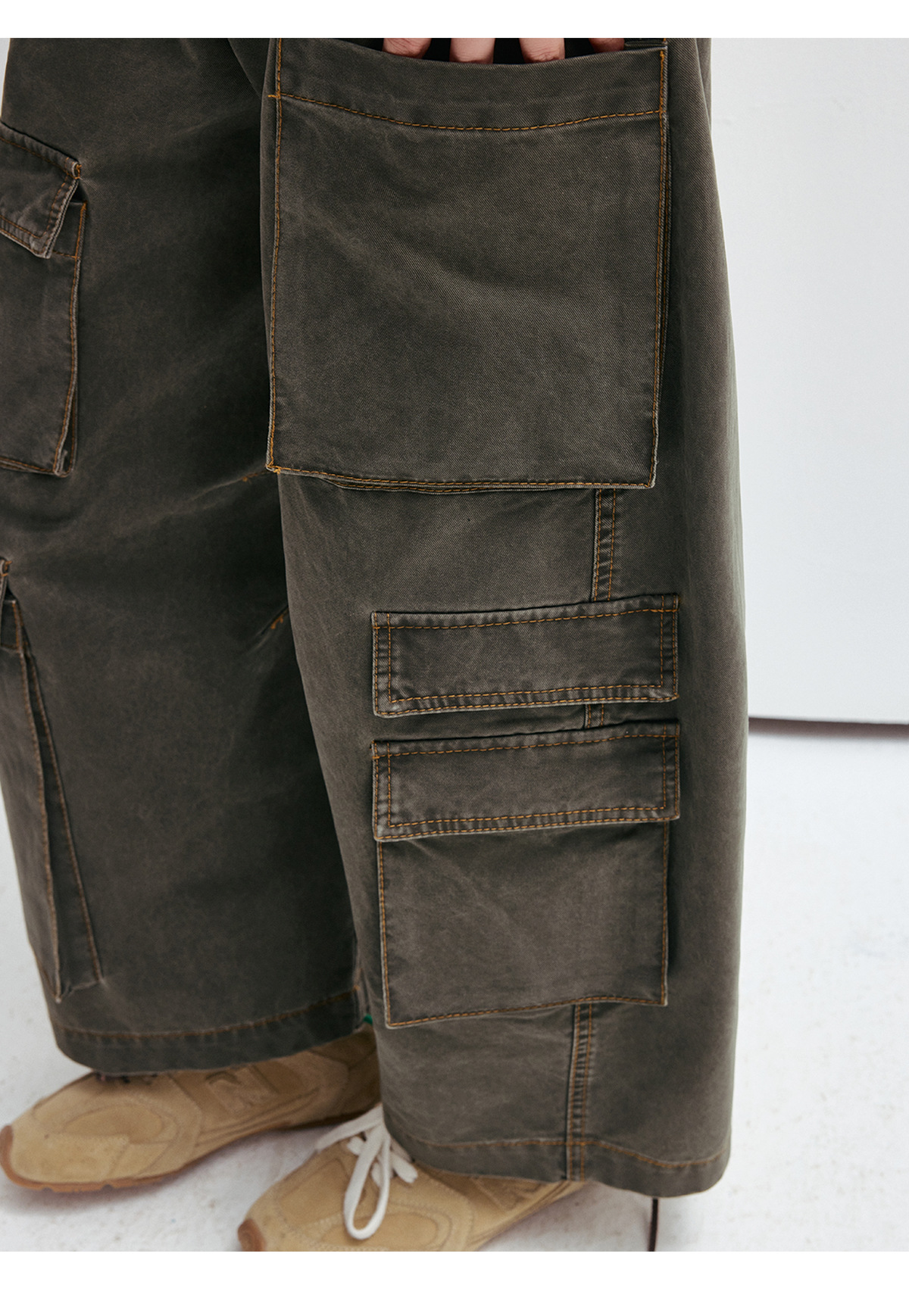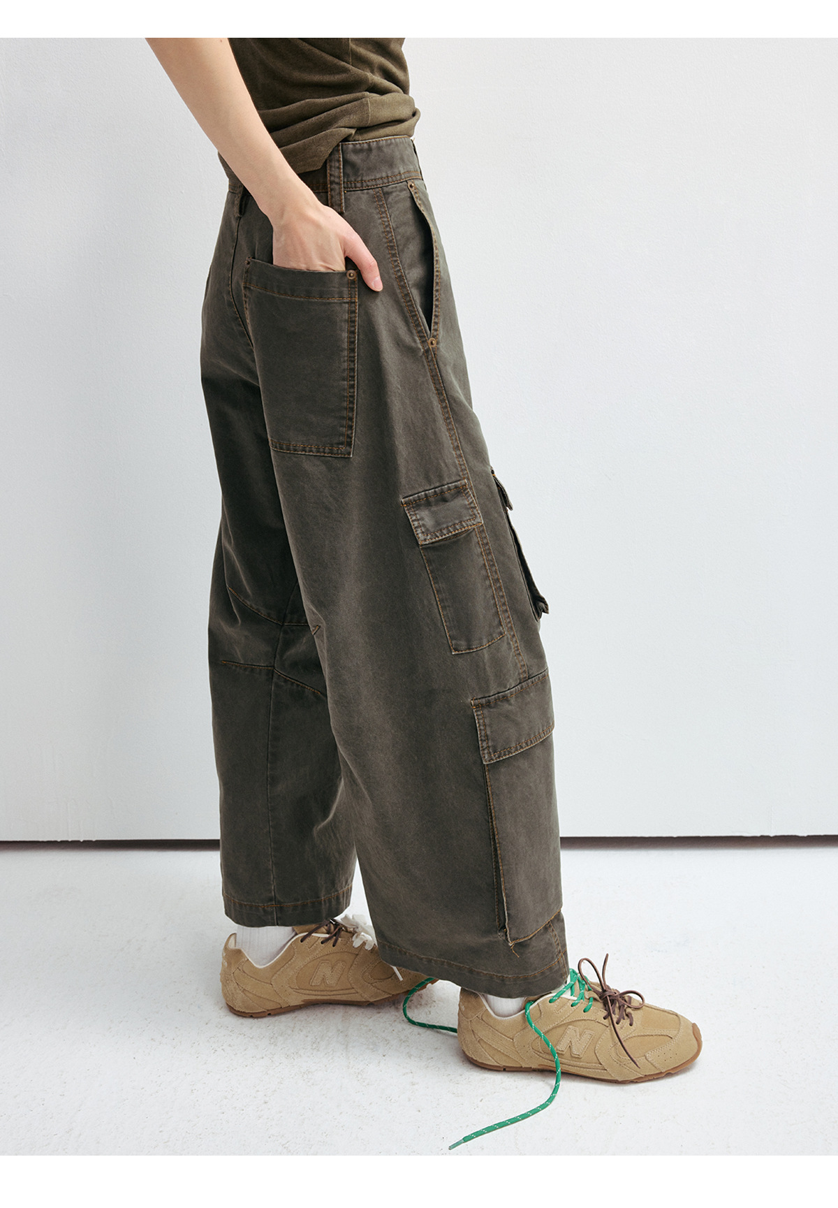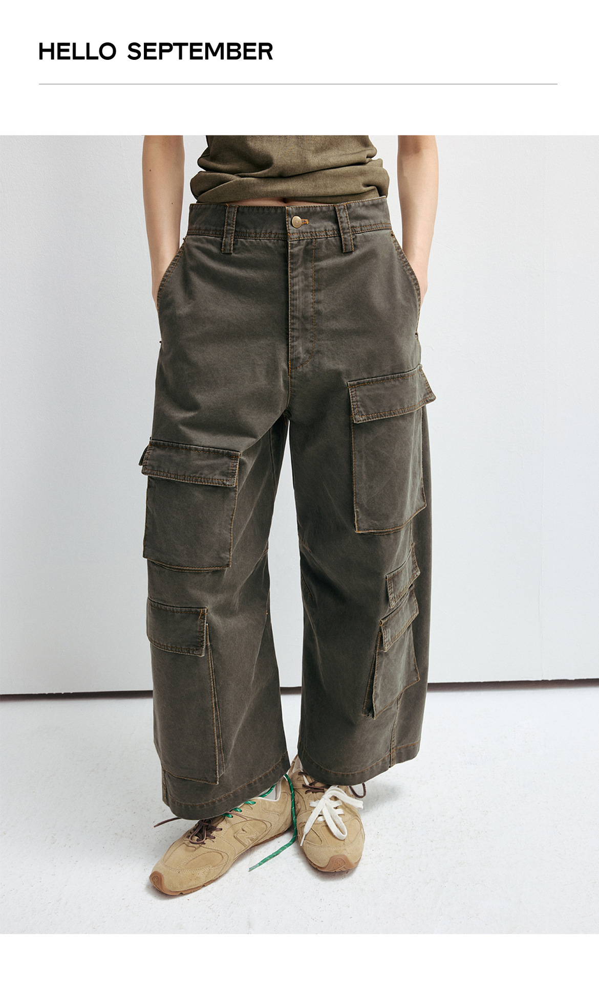 [언제 알아] 새로운 면화 느슨한 넓은 다리 바지 느낌 거리 트렌드 포켓 바지 여성 V8013스토어 가기