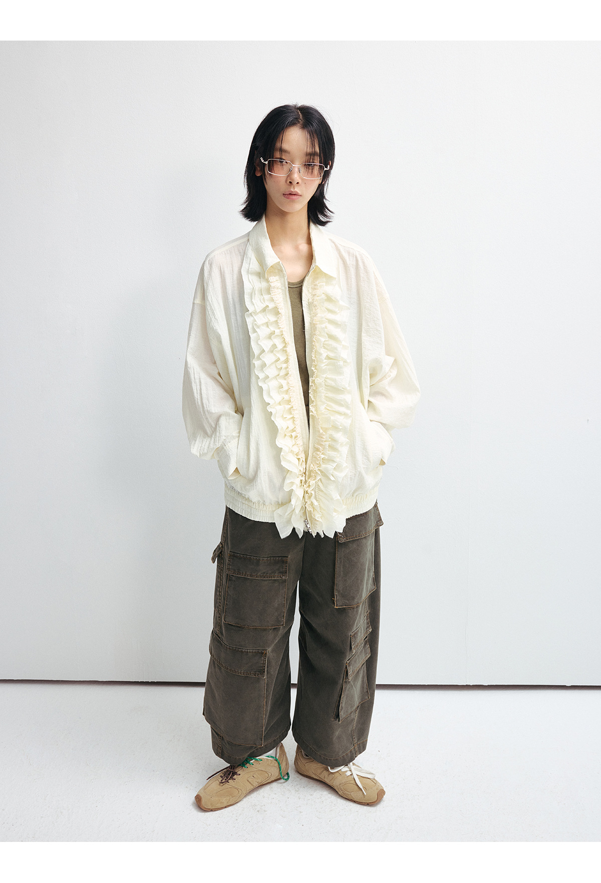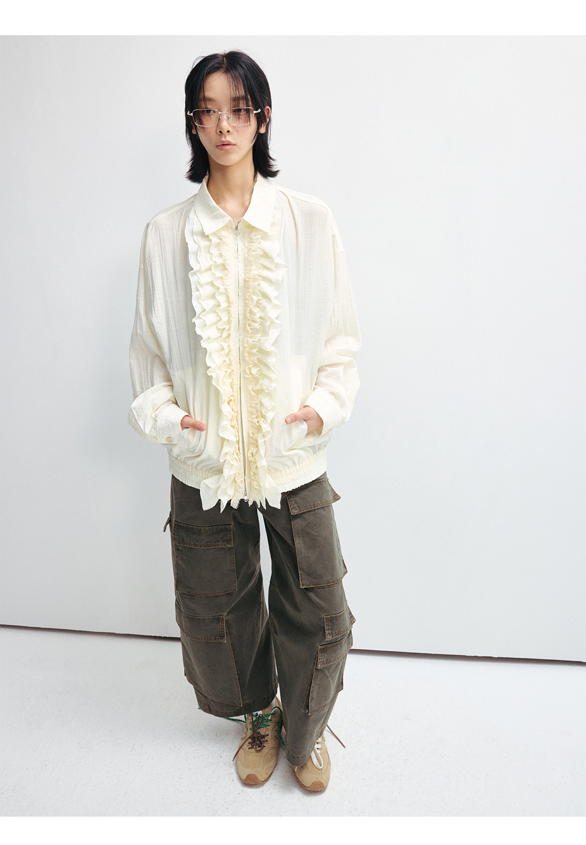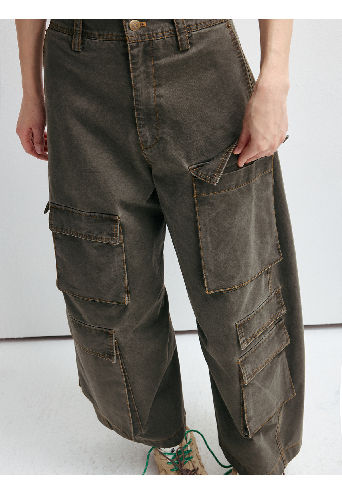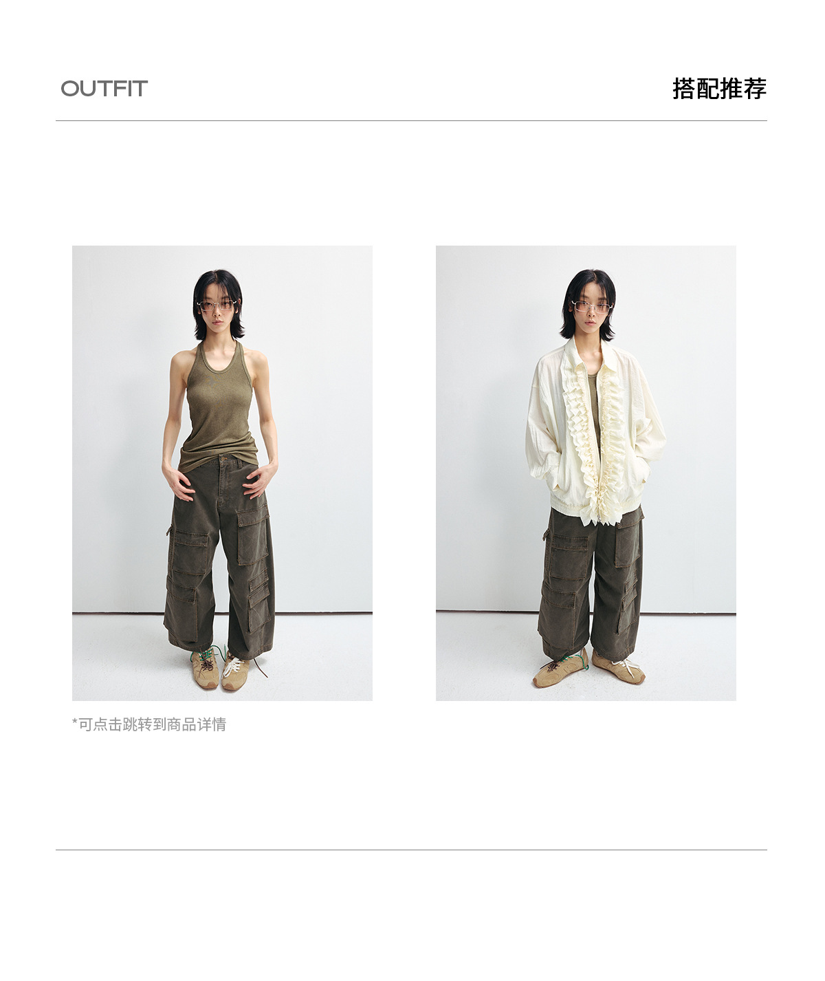 [언제 알아] 새로운 면화 느슨한 넓은 다리 바지 느낌 거리 트렌드 포켓 바지 여성 V8013스토어 가기