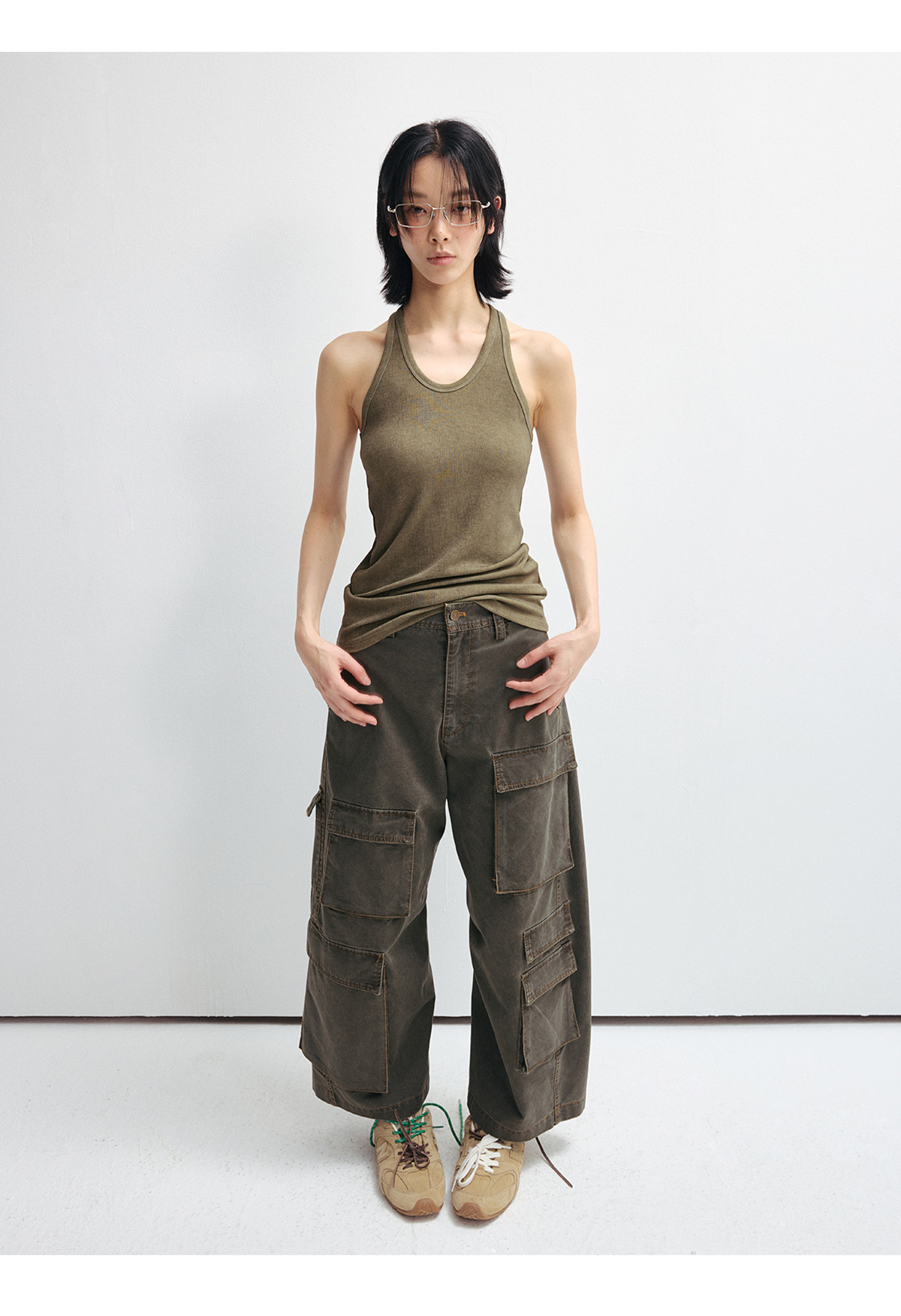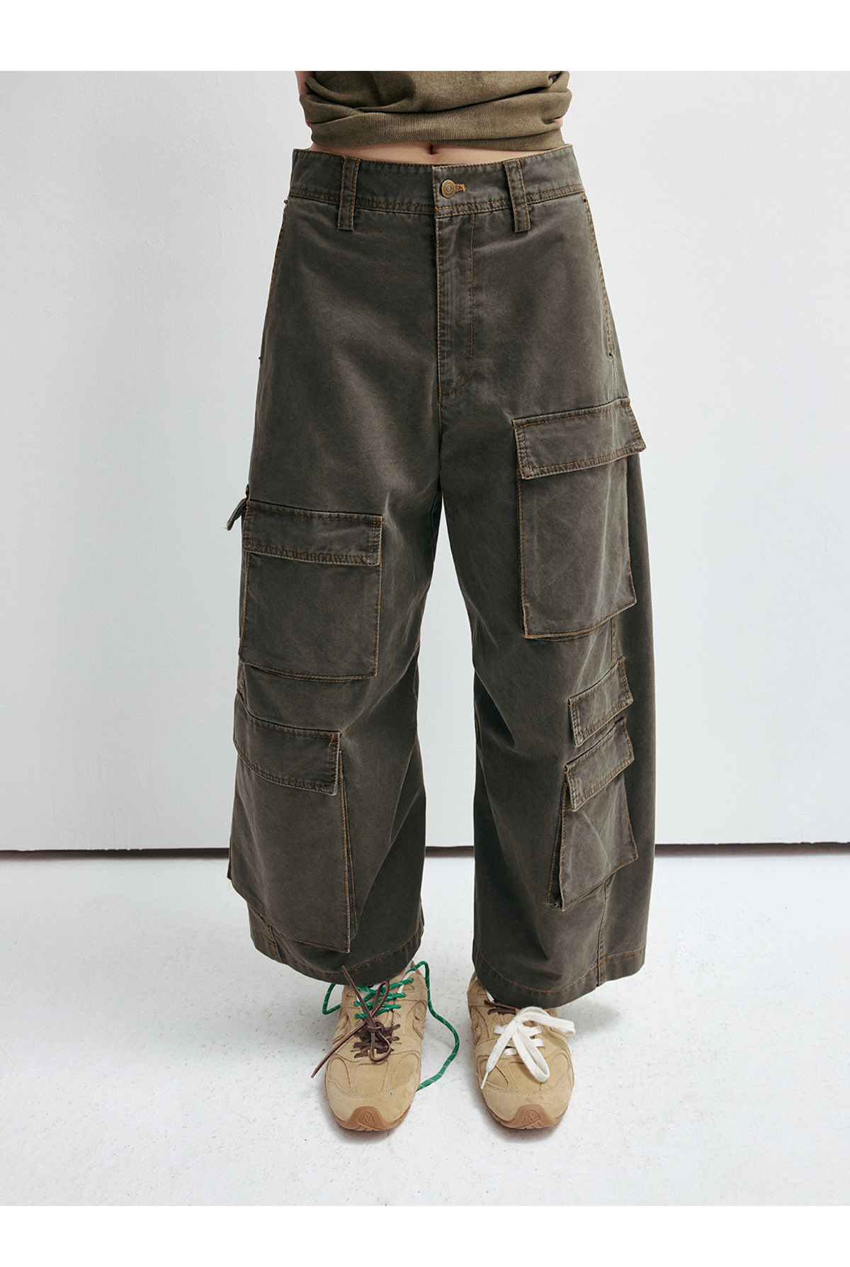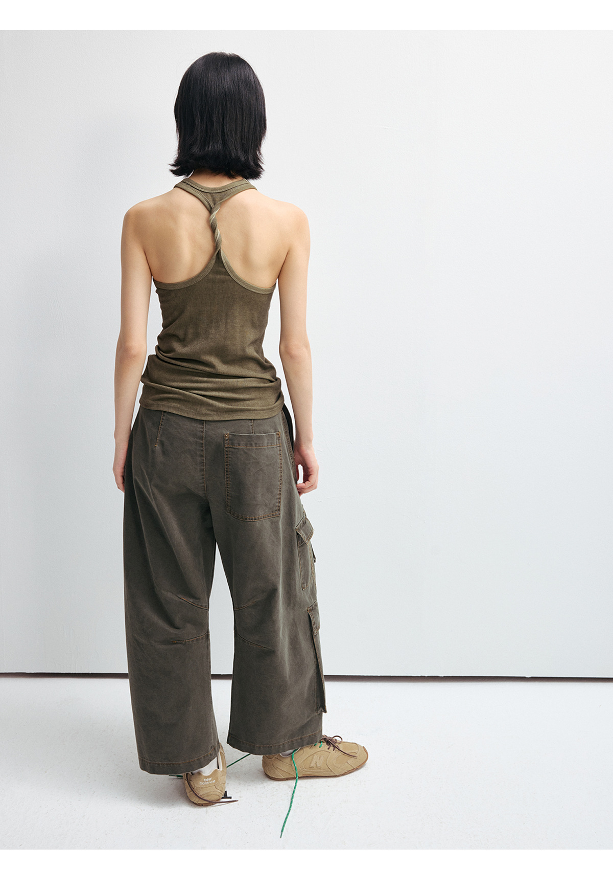 [언제 알아] 새로운 면화 느슨한 넓은 다리 바지 느낌 거리 트렌드 포켓 바지 여성 V8013