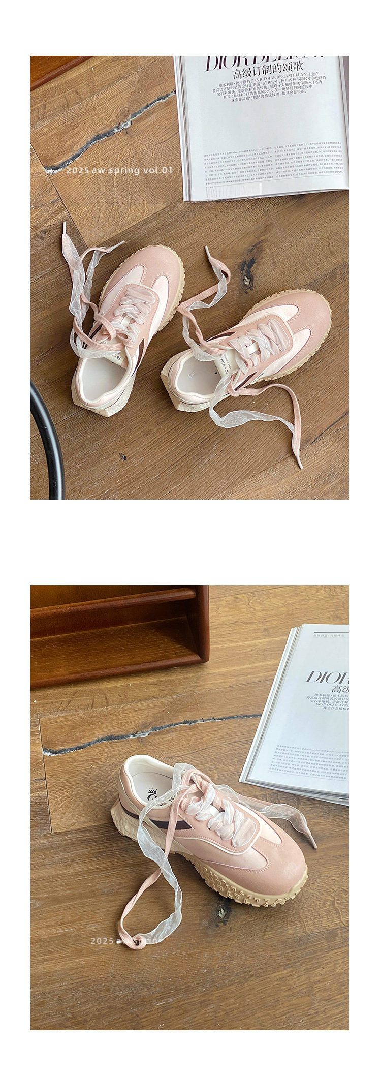 2025 봄 플랫폼 핑크 토레 신발 여성 레이스 빈티지 포레스트 검프 운동화 트렌디 한 발레 신발스토어 가기