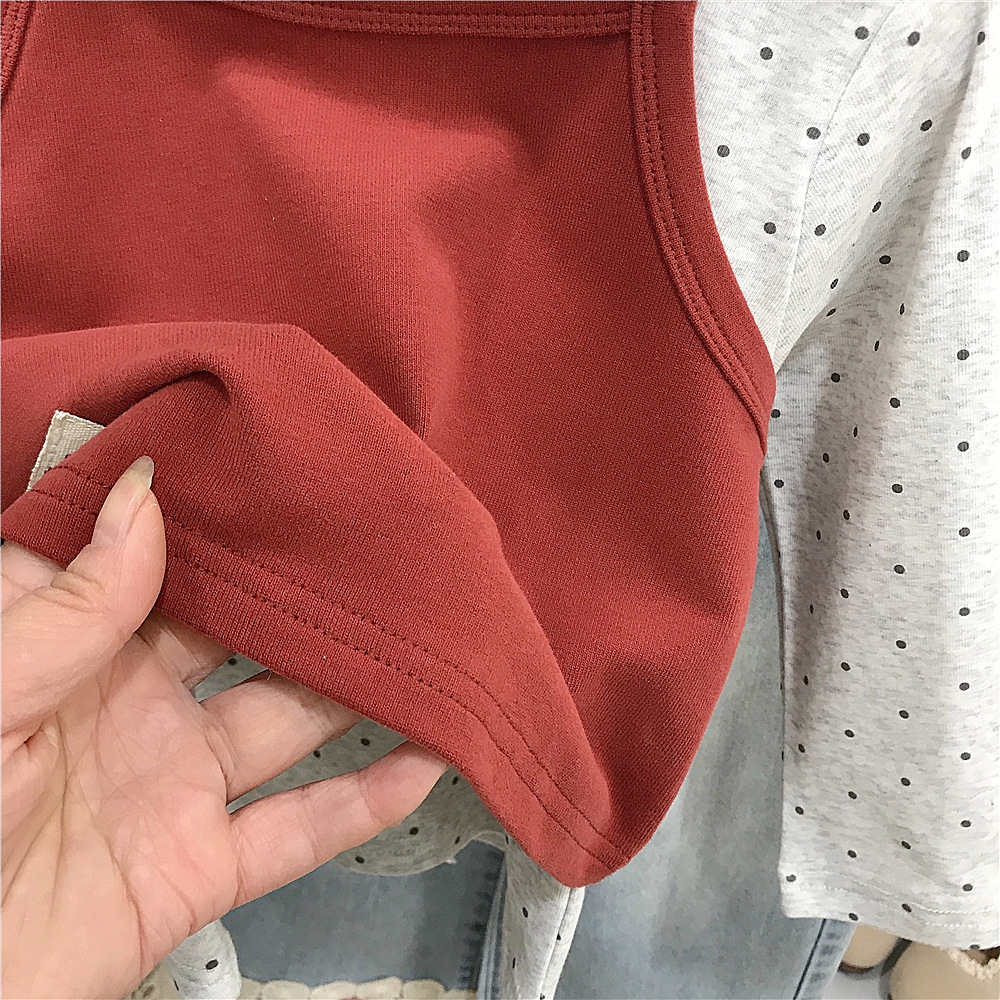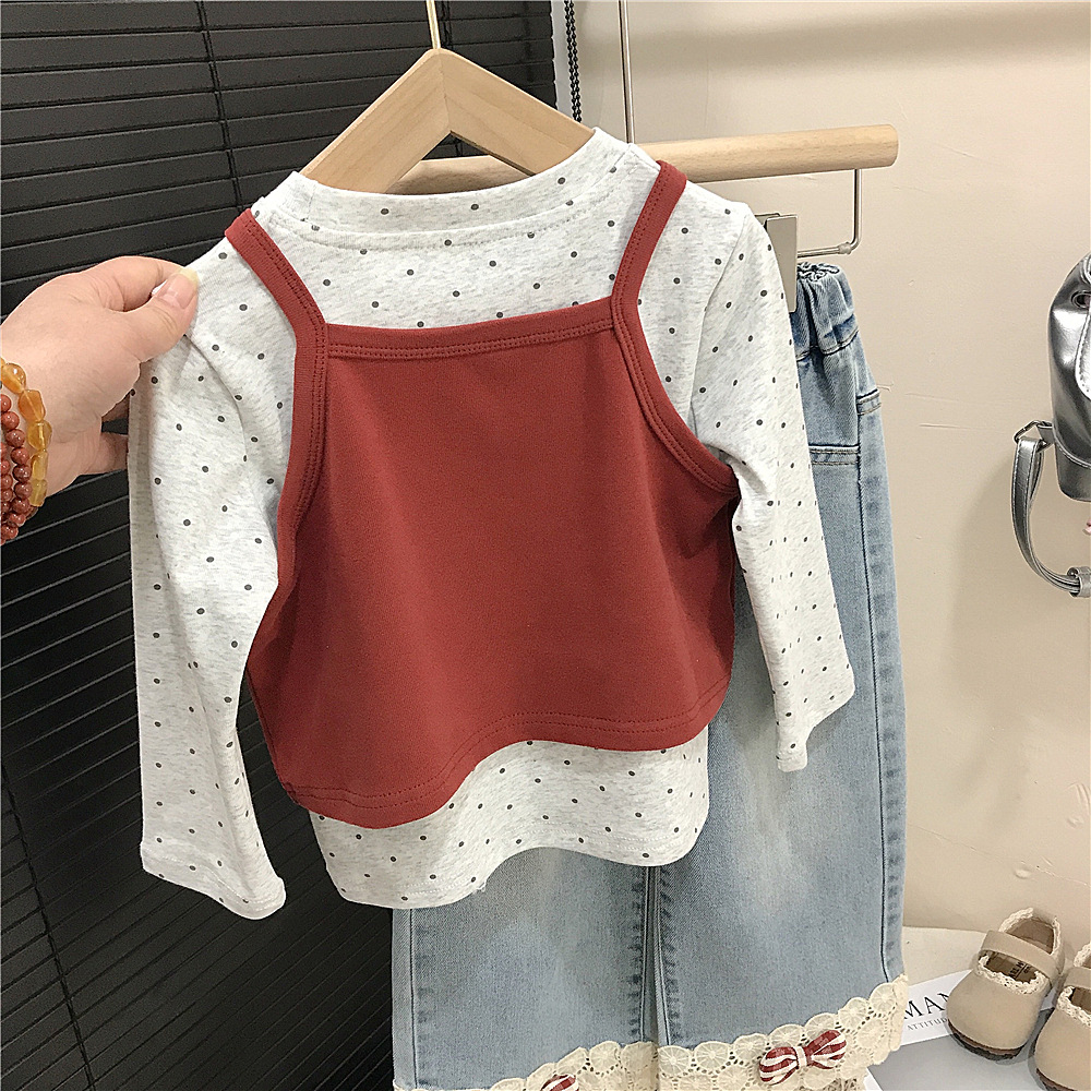 • 폴카 도트 탑+레드 멜빵 투피스 세트