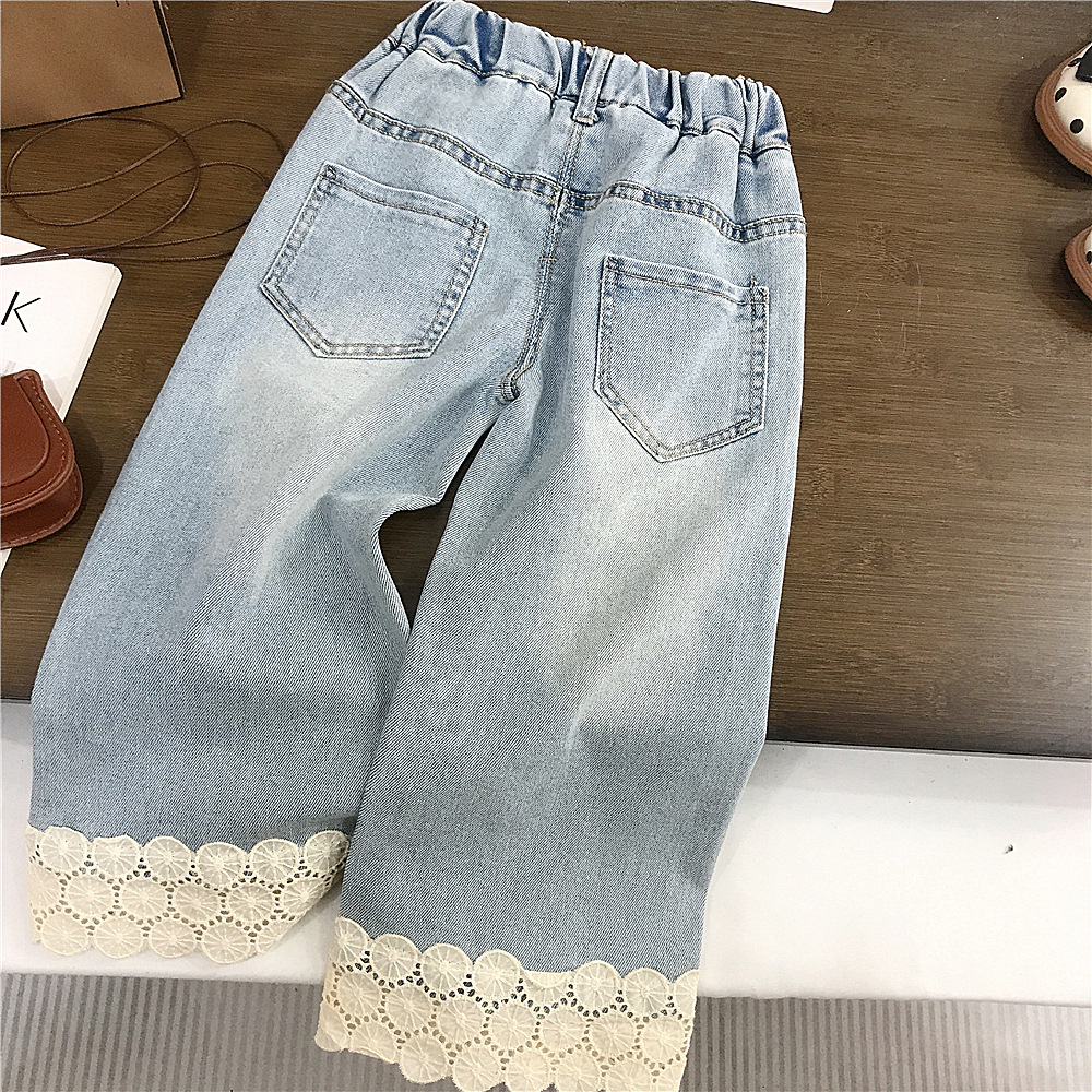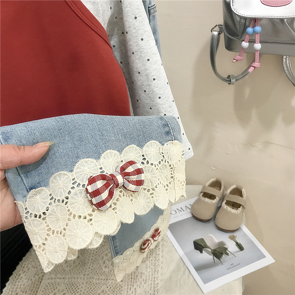 여자 슬링 세트 한국 봄 새 아이들 한국 긴 소매 티셔츠 아기 소녀 레이스 청바지 대외 무역