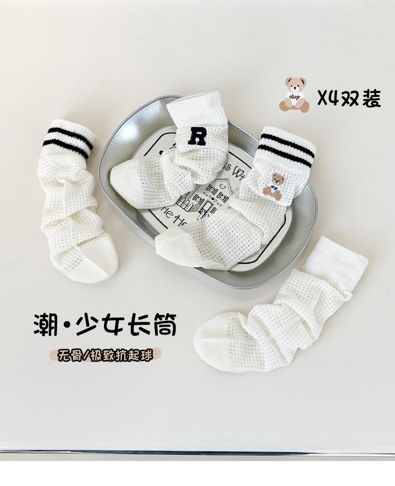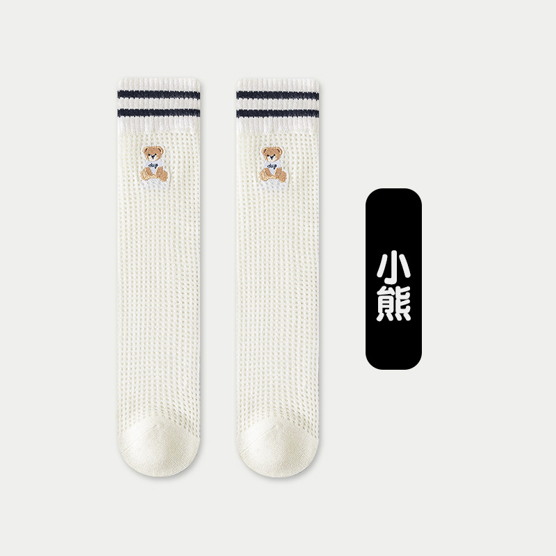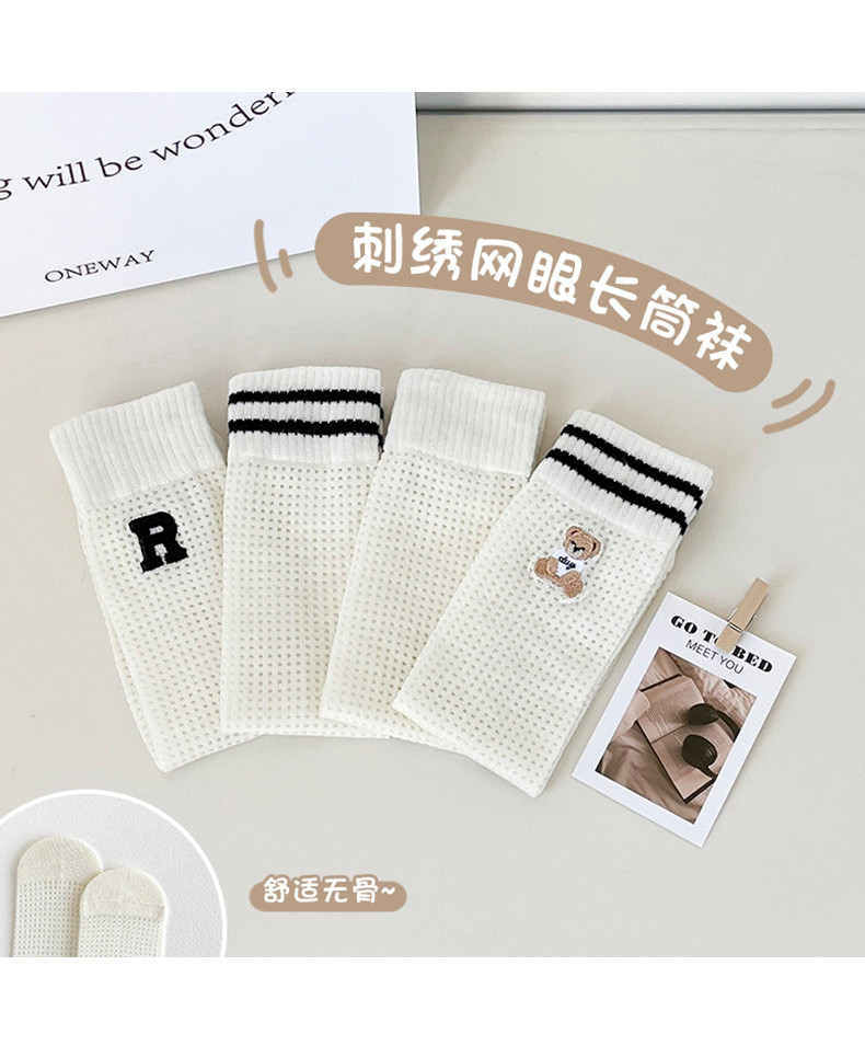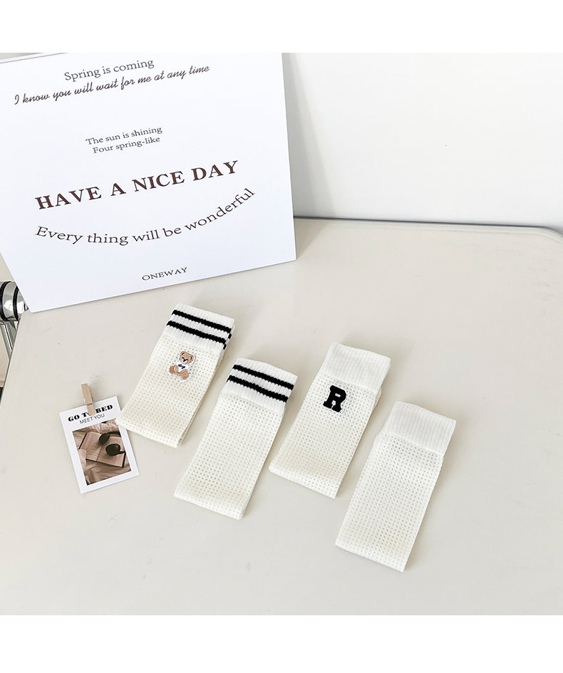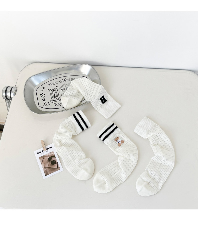 어린이 양말 봄과 여름 얇은 아카데미 스타일 소년 소녀 수 놓은 충격 양말 통기성 메쉬 뼈없는 스포츠 롱 튜브