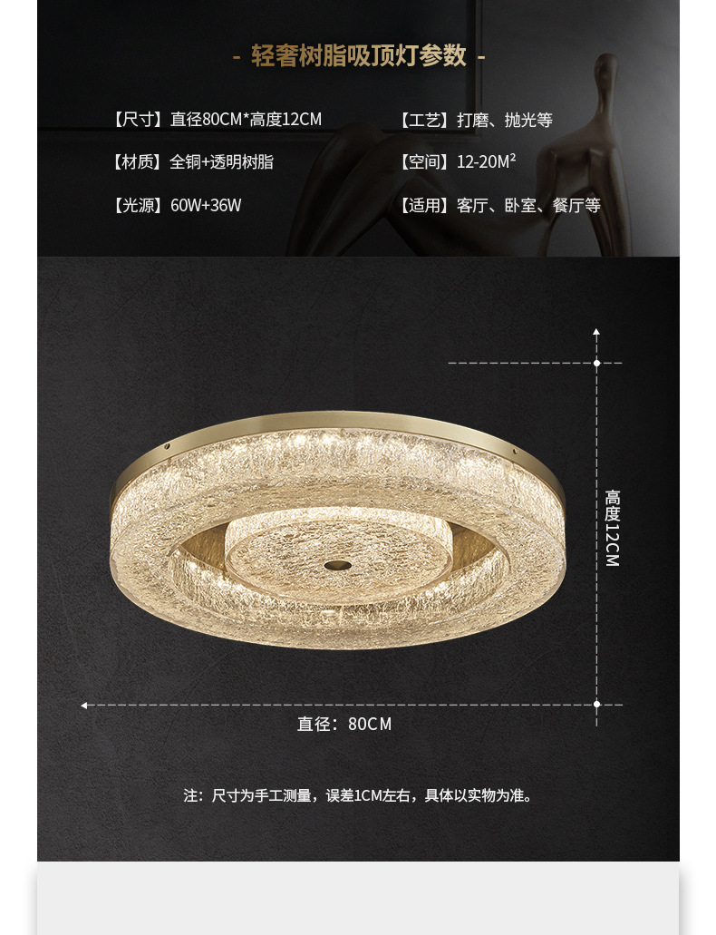 고급 구리 수지 천장 램프 간단한 현대 가정 장식 홀 분위기 램프 고급 고급 분위기 중산 램프스토어 가기