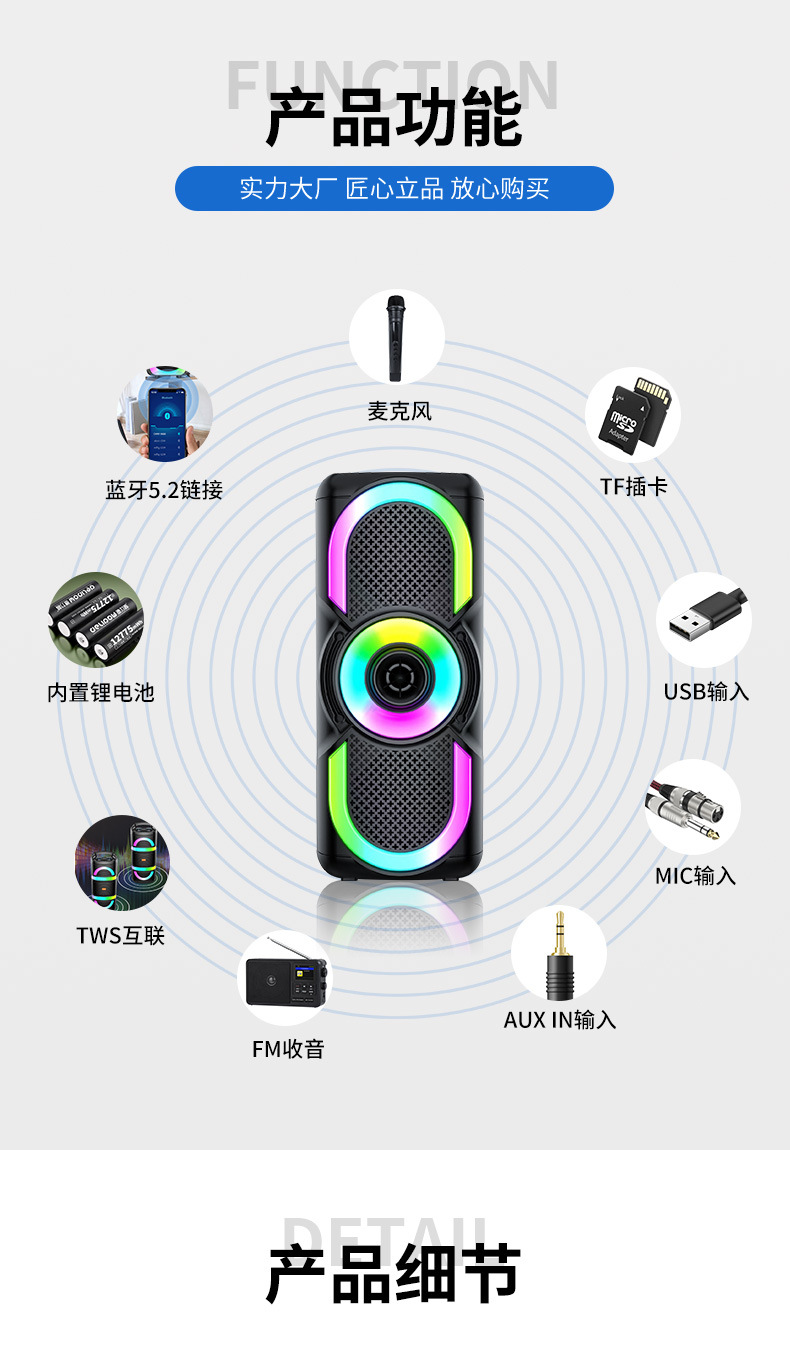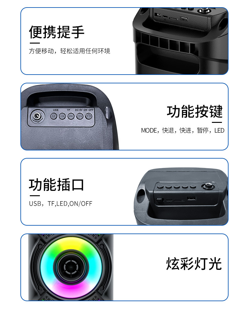 국경 듀얼 4 인치 블루투스 스피커 휴대용 야외 휴대용 무선 오디오 실내 무거운 서브 우퍼 카드 스피커