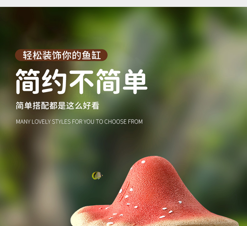 국경 간 시뮬레이션 물고기 탱크 조경 빨간색과 노란색 작은 버섯 만화 장식품 미니 장식 장식품 마이크로 풍경 피난처스토어 가기