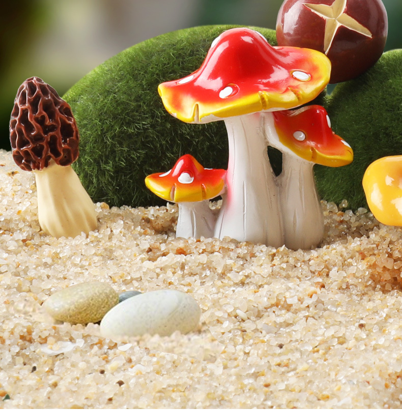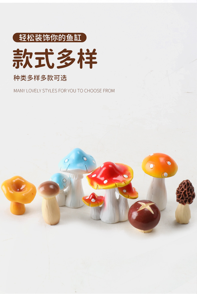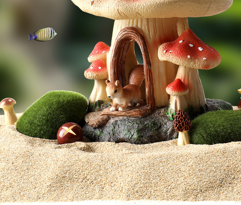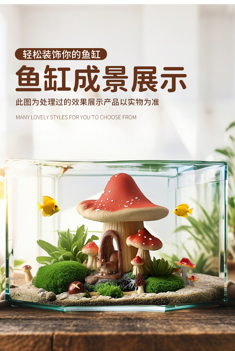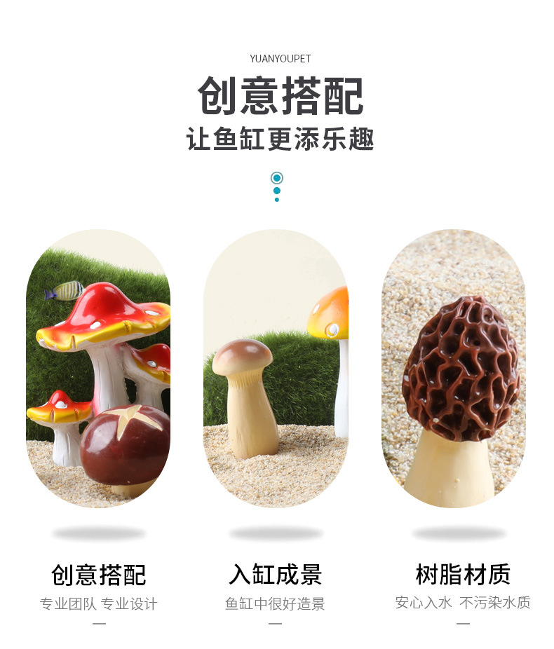 국경 간 시뮬레이션 물고기 탱크 조경 빨간색과 노란색 작은 버섯 만화 장식품 미니 장식 장식품 마이크로 풍경 피난처