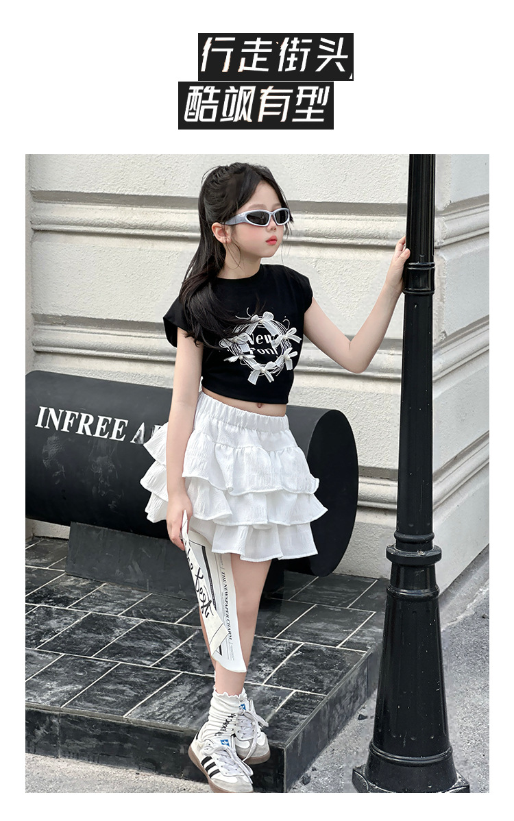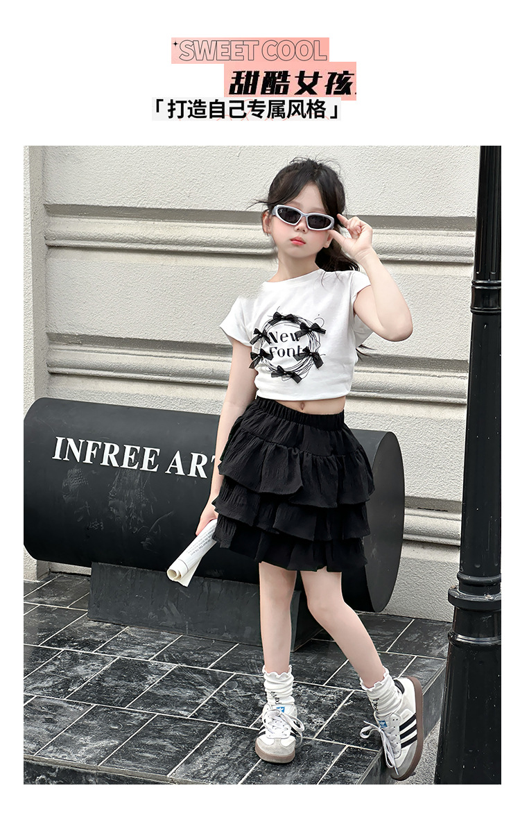 크로스 보더 걸스 여름 캐주얼 세트 2025 어린 소녀와 어린이 세련된 반팔 티셔츠 쇼트 스커트를위한 새로운 스타일 투피스 세트