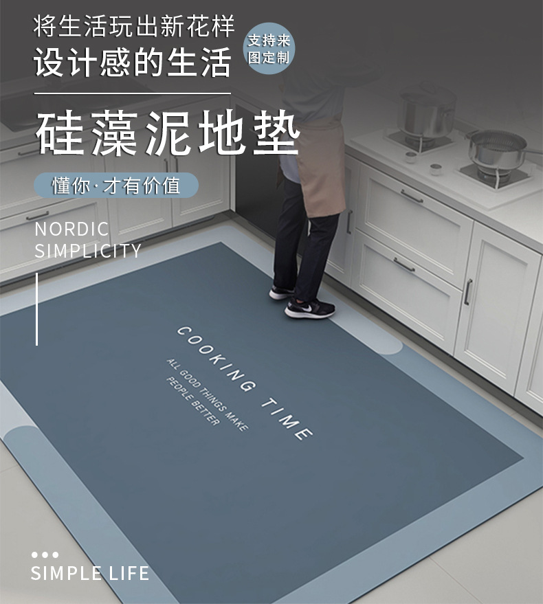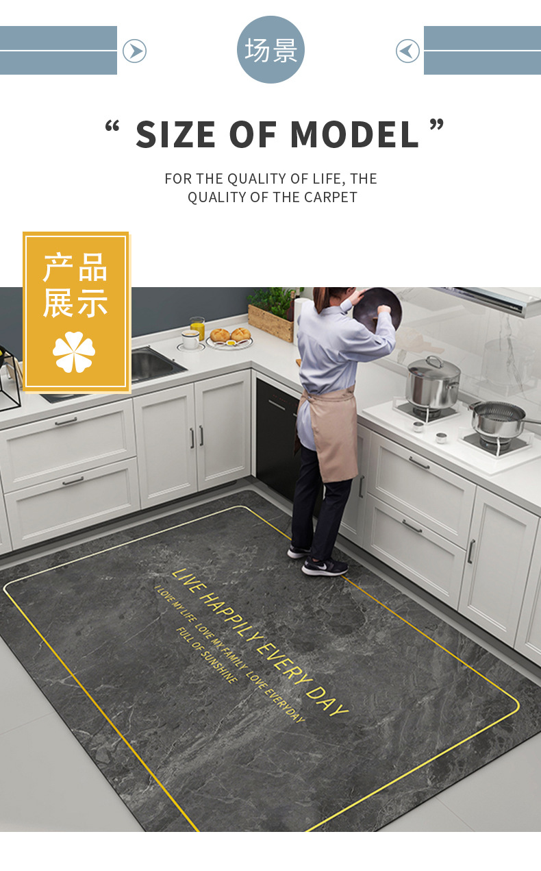 국경 간 주방 바닥 매트 큰 지역 완전 확산 미끄럼 방지 매트 물 흡수성 빠른 건조 Diatom 진흙 바닥 매트 가정용 고급 느낌 발 매트스토어 가기