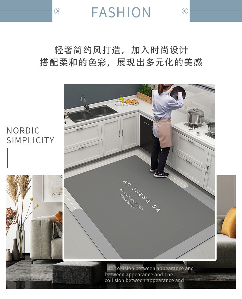 국경 간 주방 바닥 매트 큰 지역 완전 확산 미끄럼 방지 매트 물 흡수성 빠른 건조 Diatom 진흙 바닥 매트 가정용 고급 느낌 발 매트