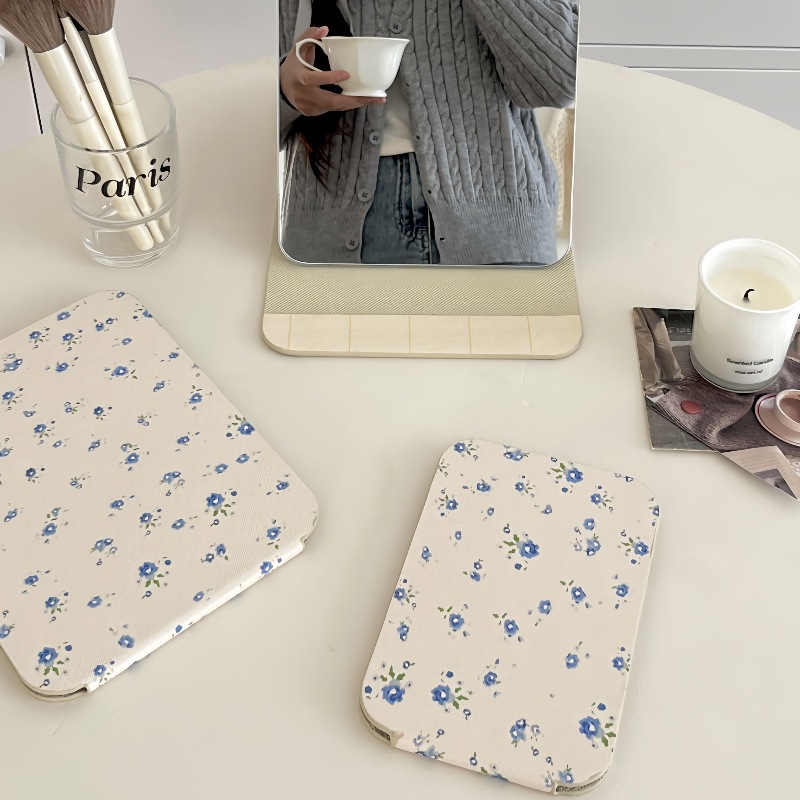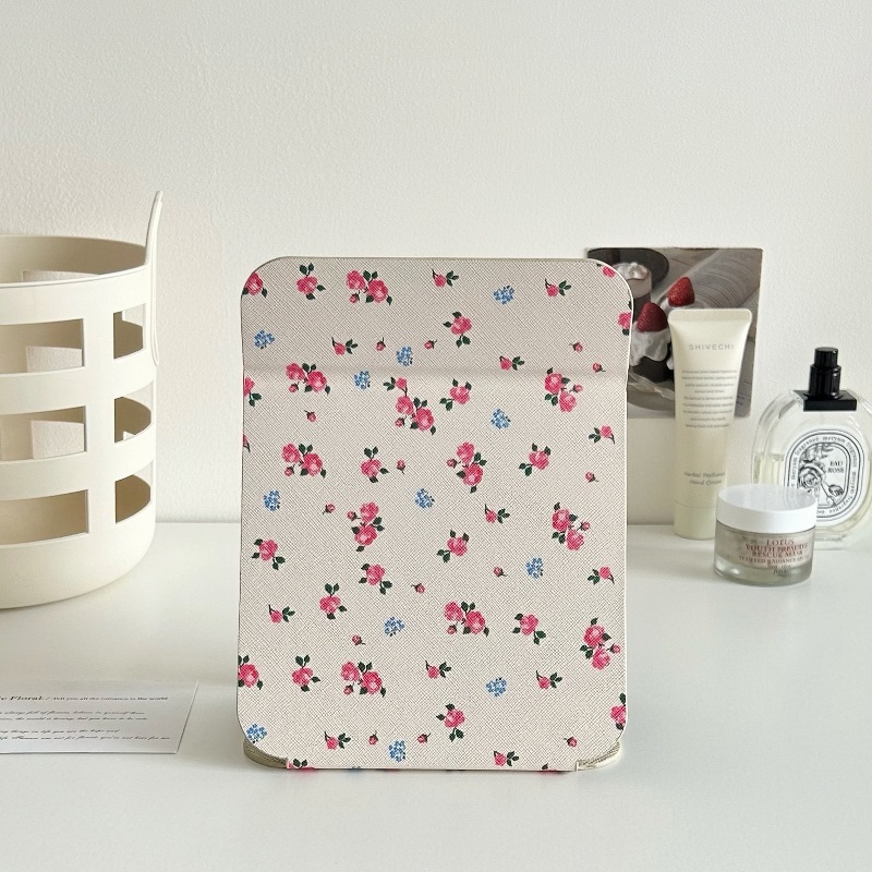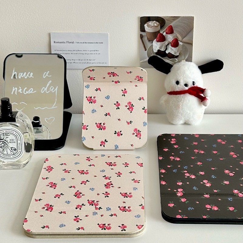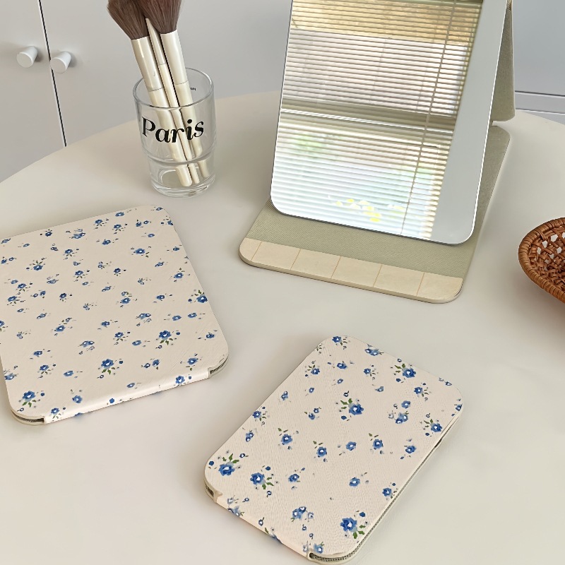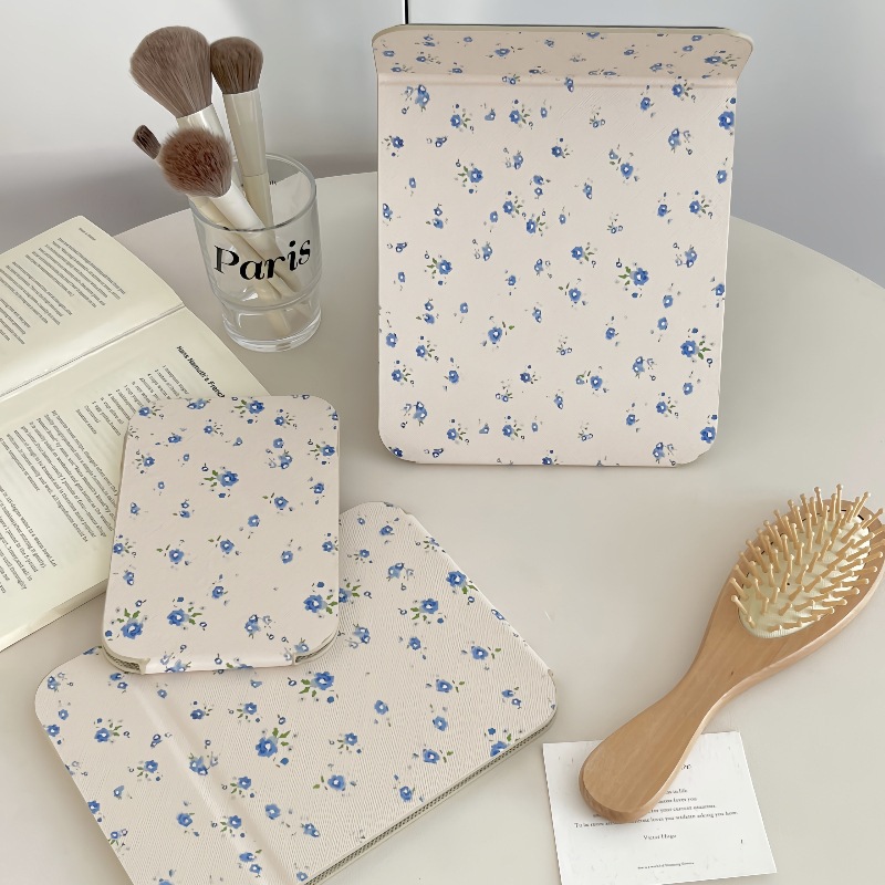 ✅소녀의 가슴 아픈 꽃 접이식 거울 메이크업 거울 휴대용 여행 휴대용 학생 기숙사 드레서 스타일 Eertable 작은 거울