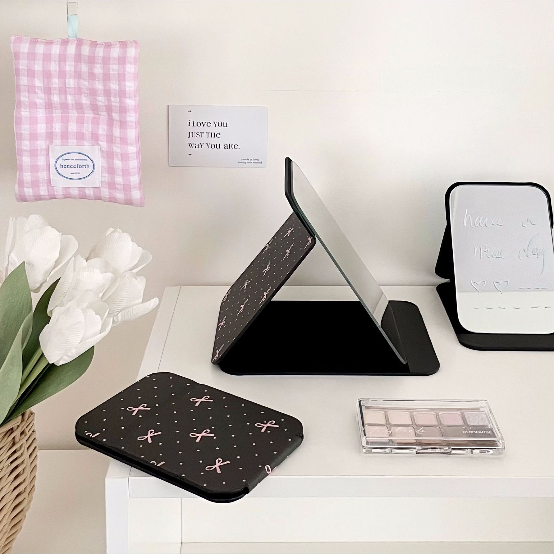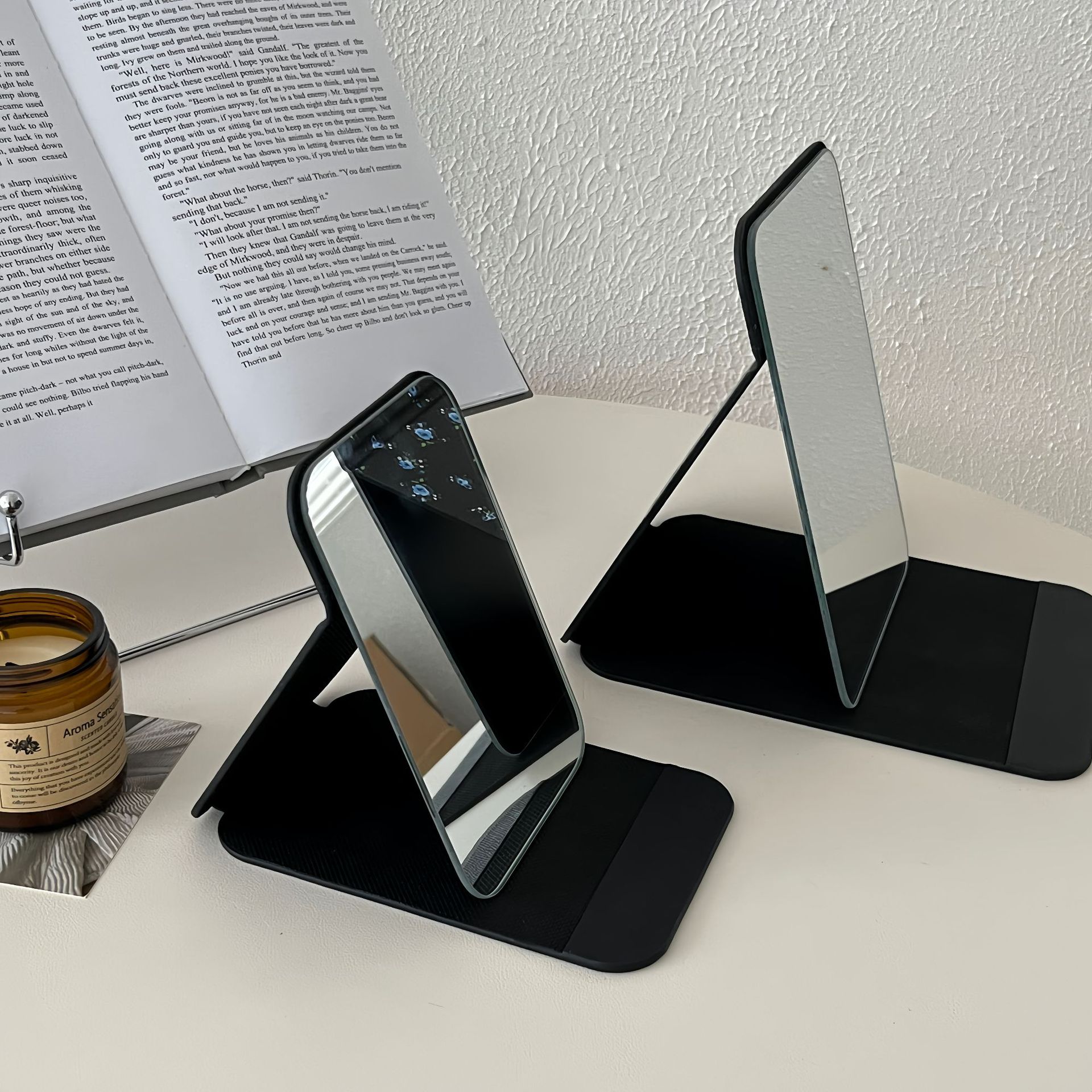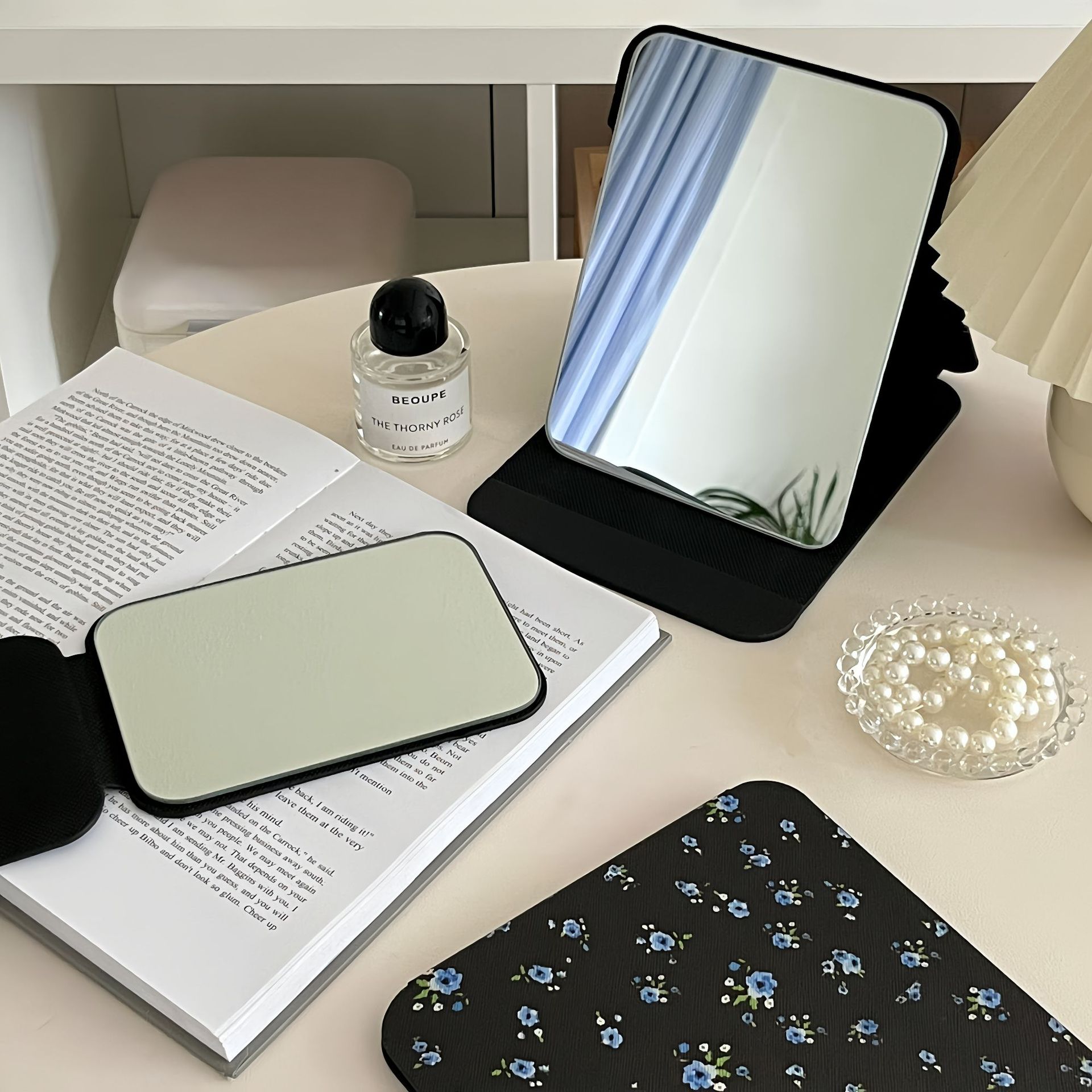 ✅소녀의 가슴 아픈 꽃 접이식 거울 메이크업 거울 휴대용 여행 휴대용 학생 기숙사 드레서 스타일 Eertable 작은 거울