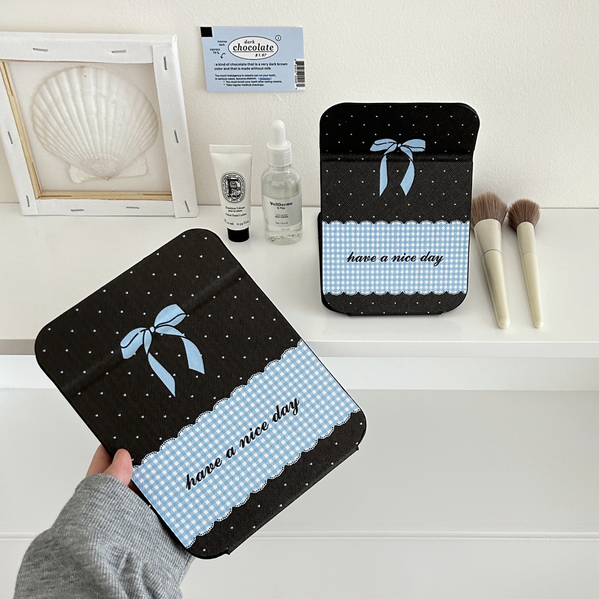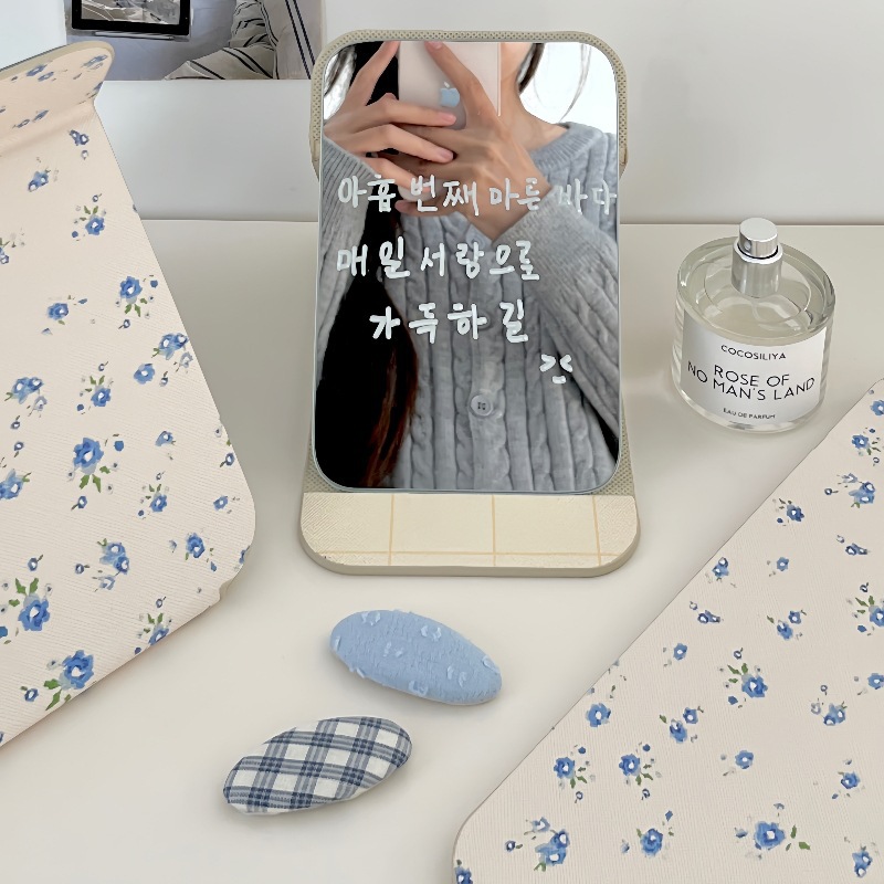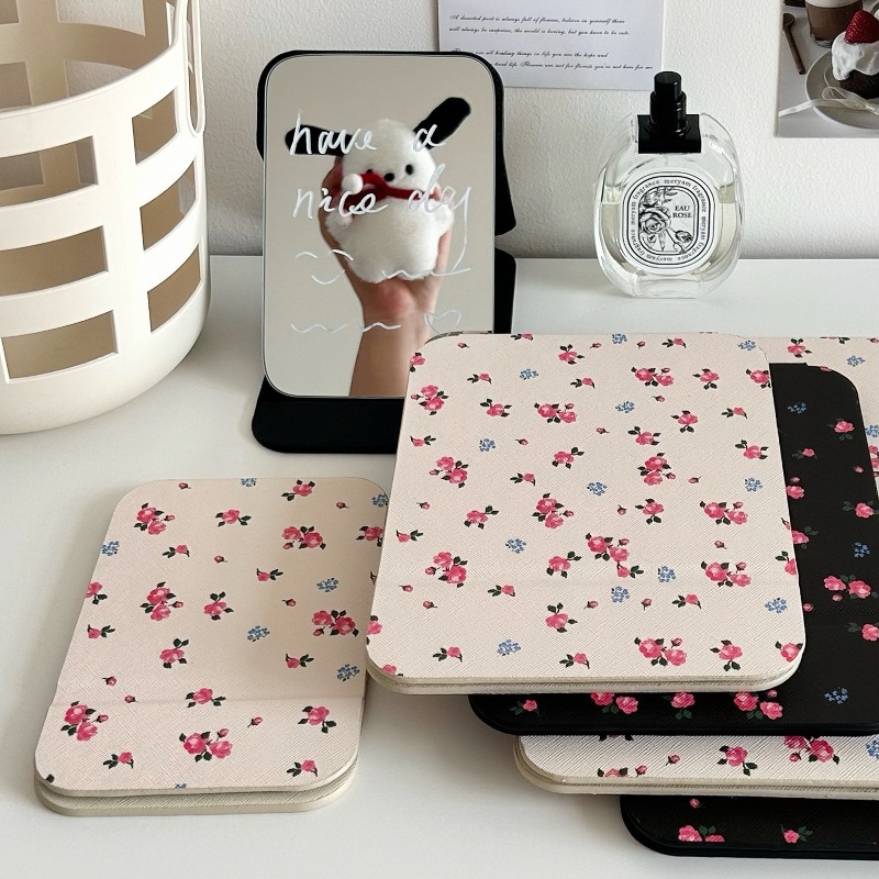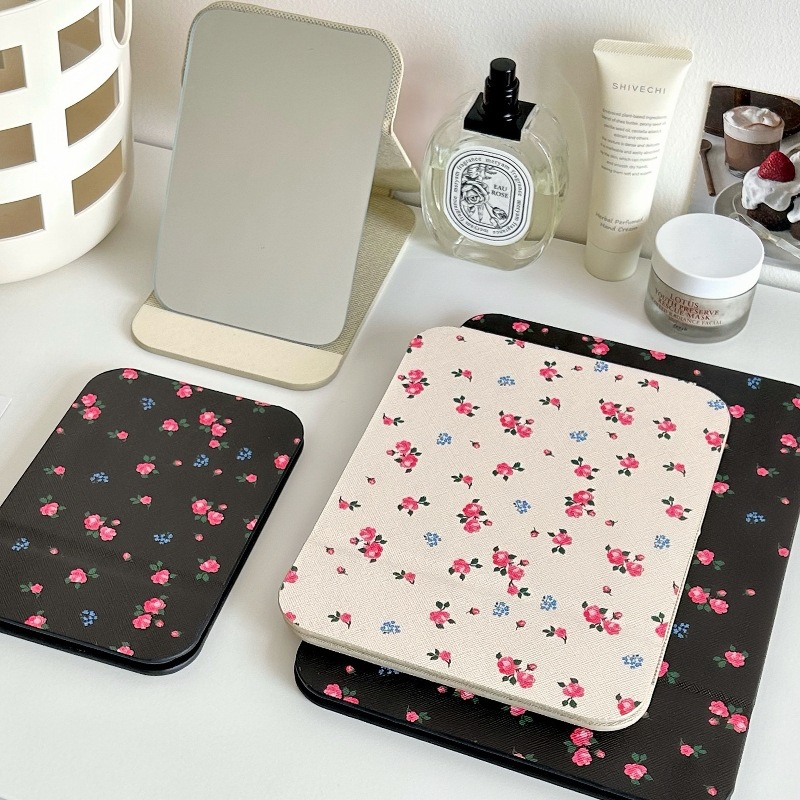 ✅소녀의 가슴 아픈 꽃 접이식 거울 메이크업 거울 휴대용 여행 휴대용 학생 기숙사 드레서 스타일 Eertable 작은 거울스토어 가기