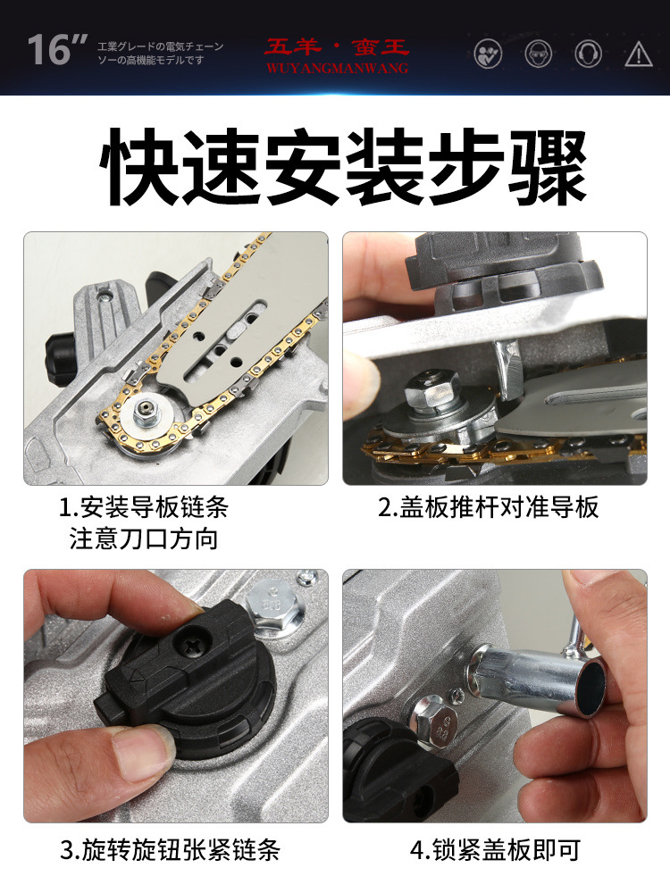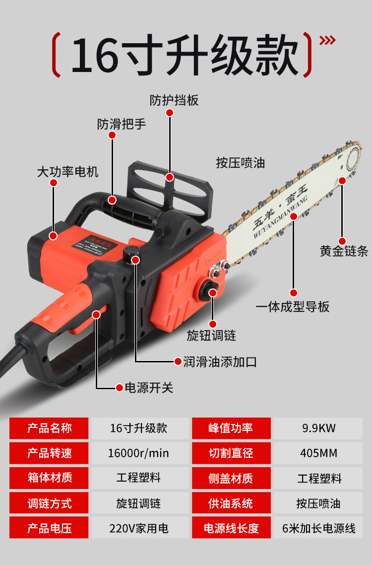 • 【 16inch 】 최고 마력 모델 【 8m 라인 플러그인 모델 】 - 골드 수입 체인 3개 + 두꺼운 가이드 플레이트 1개 + 고급 선물