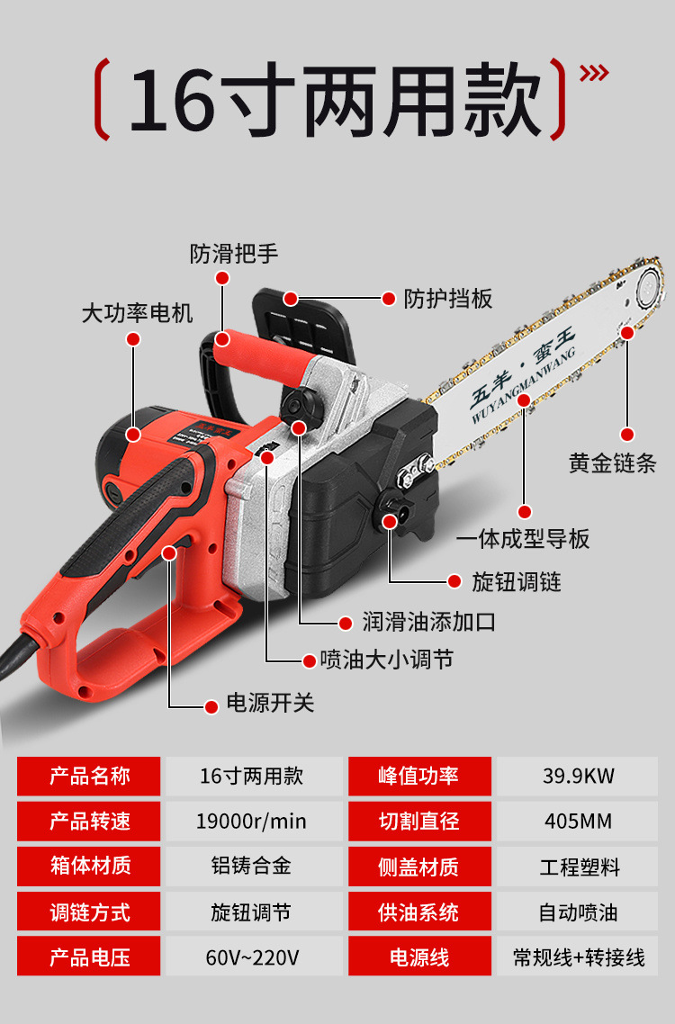 • 【 16inch 】 최고 마력 모델 【 8m 라인 플러그인 모델 】 - 골드 수입 체인 2개 + 두꺼운 가이드 플레이트 1개 + 고급 선물