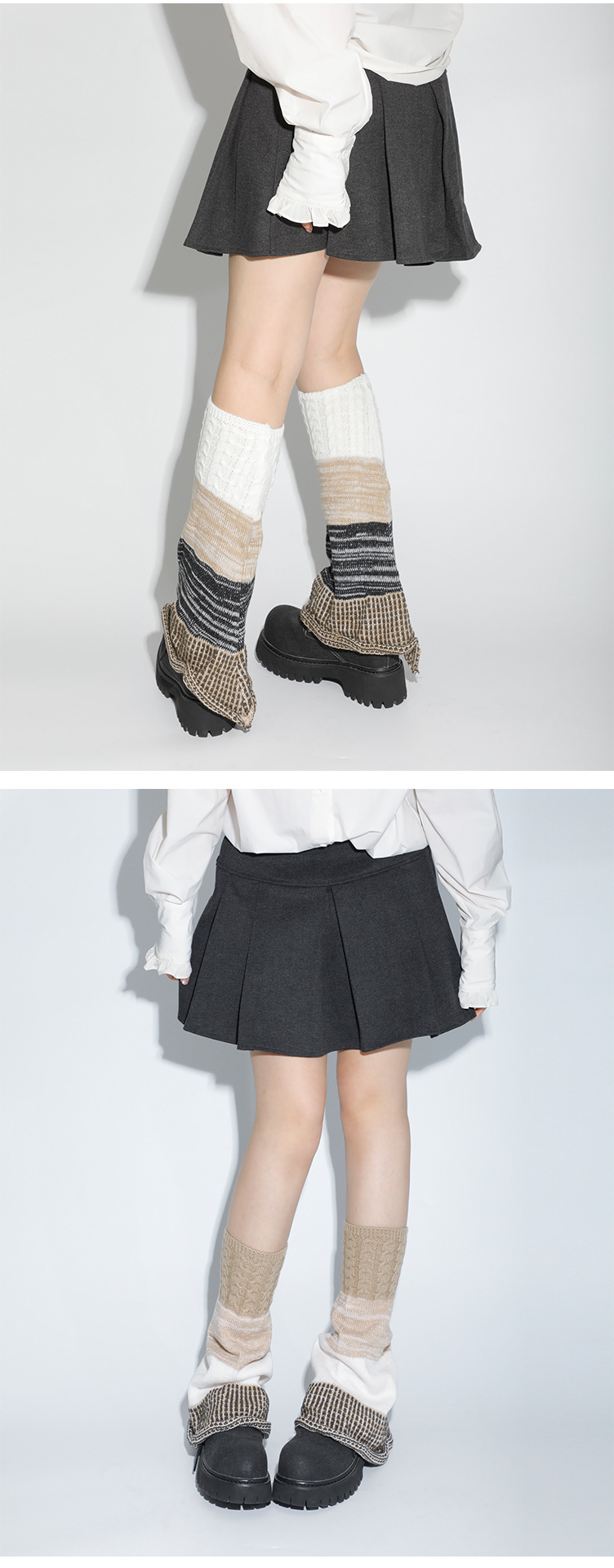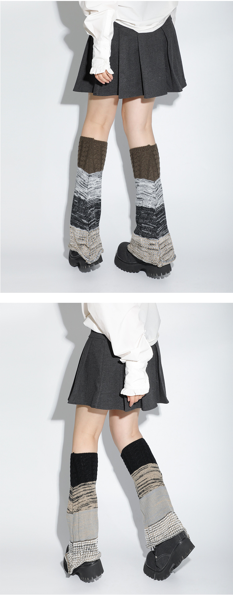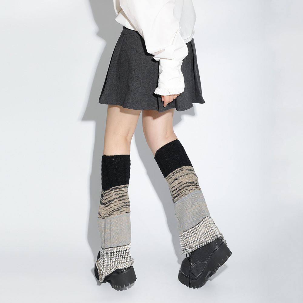 대마 패턴 접합 컬러 니트 양말 밀레니엄 빈티지 넓은 다리 뿔 다리 소매 Y2K 야비 스파이스 걸스 더미 양말