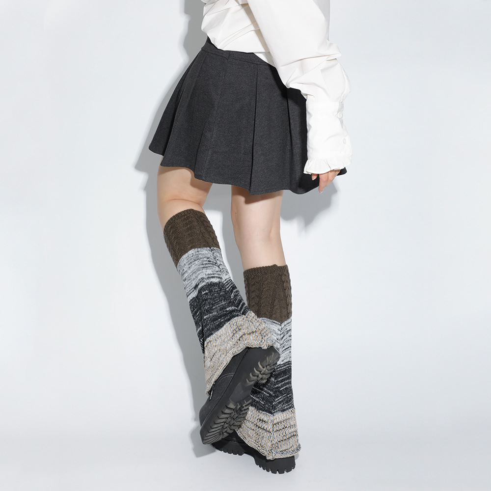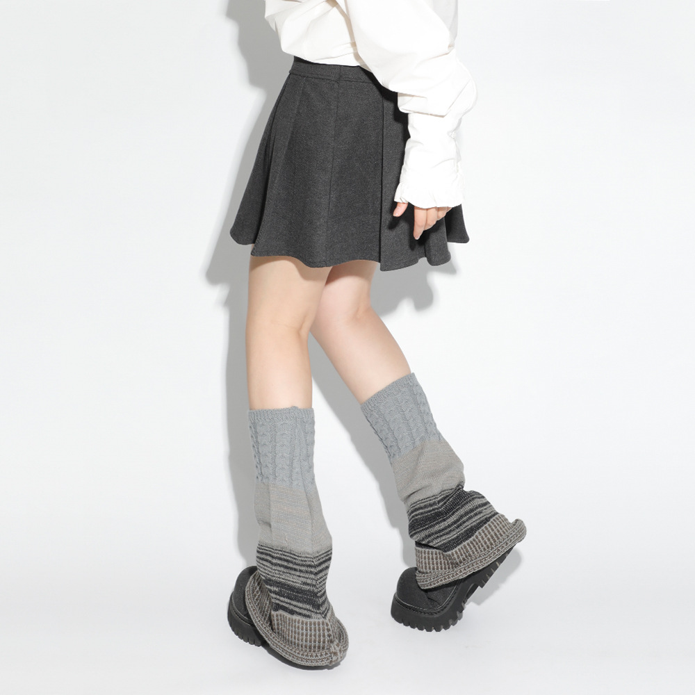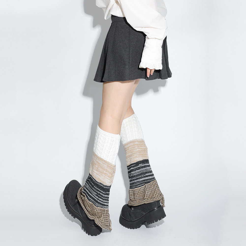 대마 패턴 접합 컬러 니트 양말 밀레니엄 빈티지 넓은 다리 뿔 다리 소매 Y2K 야비 스파이스 걸스 더미 양말스토어 가기