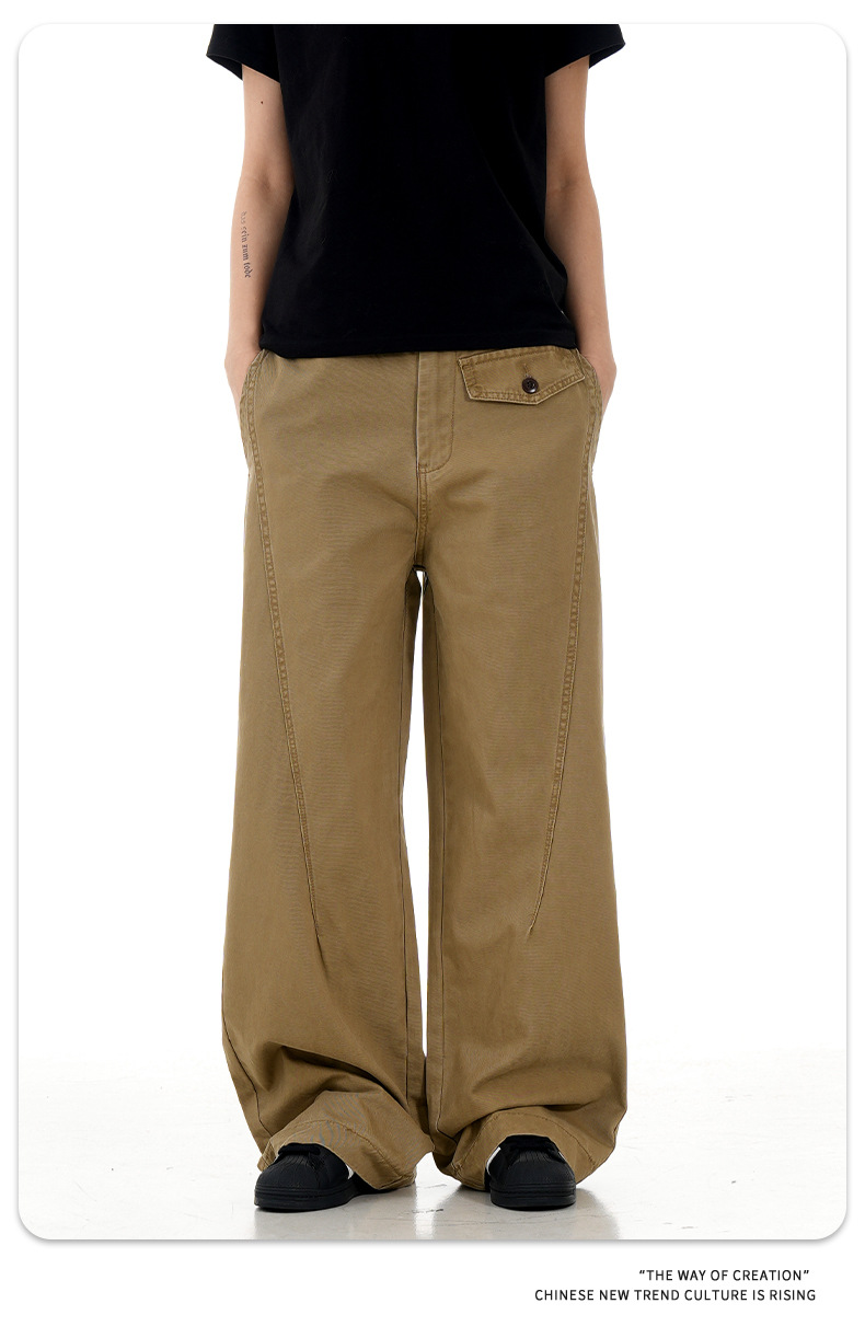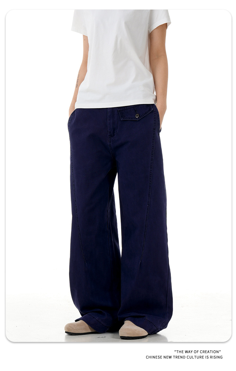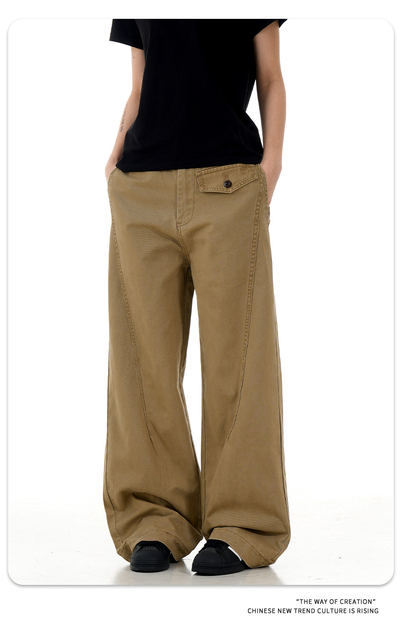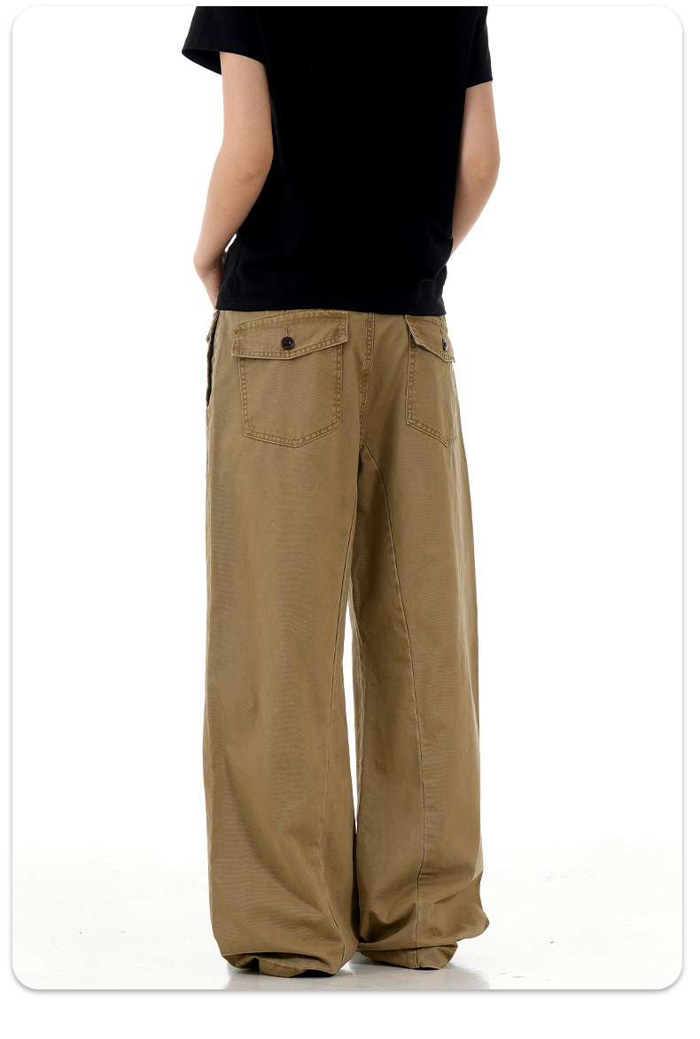 11KN 아메리칸 레트로 스트레이트 워크 팬츠 남녀공용 오르간 가짜 포켓 디자인 빈티지 슬림핏 루즈 캐주얼 롱 팬츠