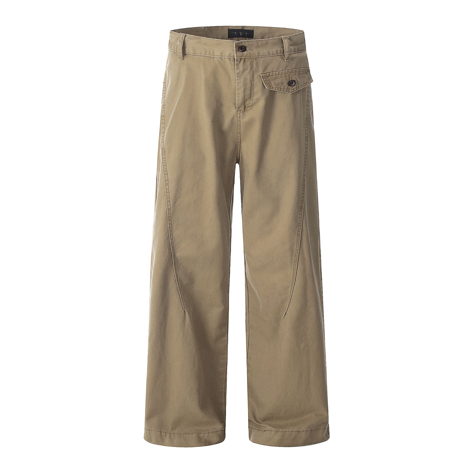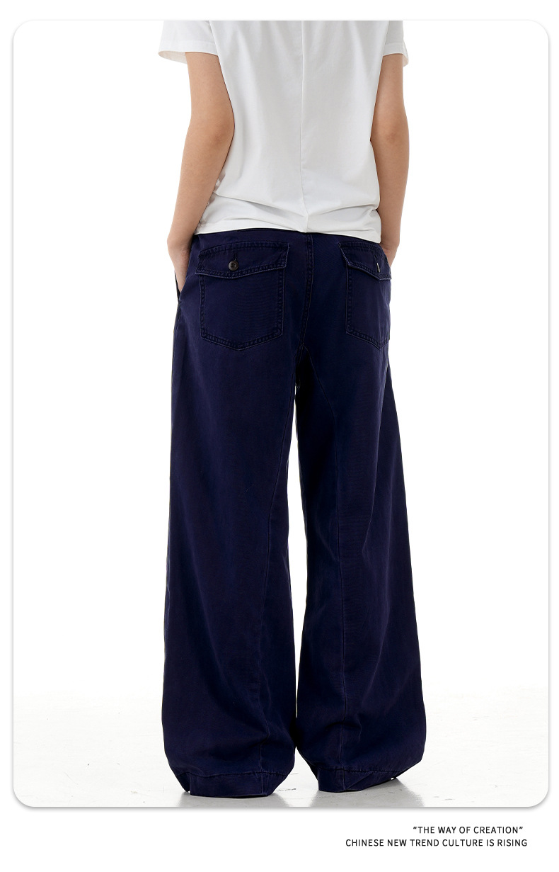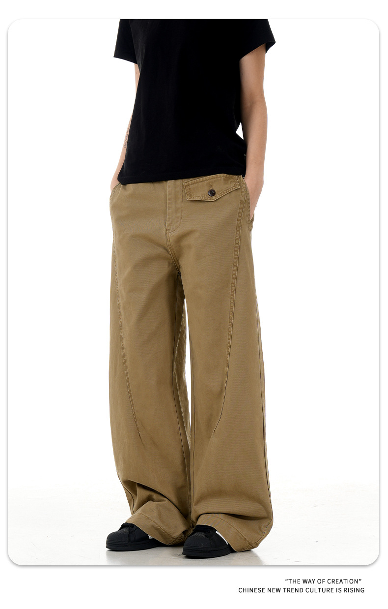 11KN 아메리칸 레트로 스트레이트 워크 팬츠 남녀공용 오르간 가짜 포켓 디자인 빈티지 슬림핏 루즈 캐주얼 롱 팬츠