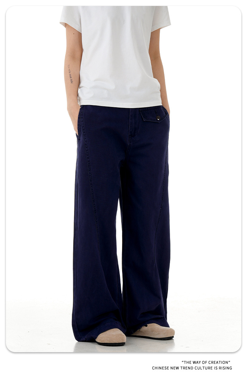 11KN 아메리칸 레트로 스트레이트 워크 팬츠 남녀공용 오르간 가짜 포켓 디자인 빈티지 슬림핏 루즈 캐주얼 롱 팬츠스토어 가기