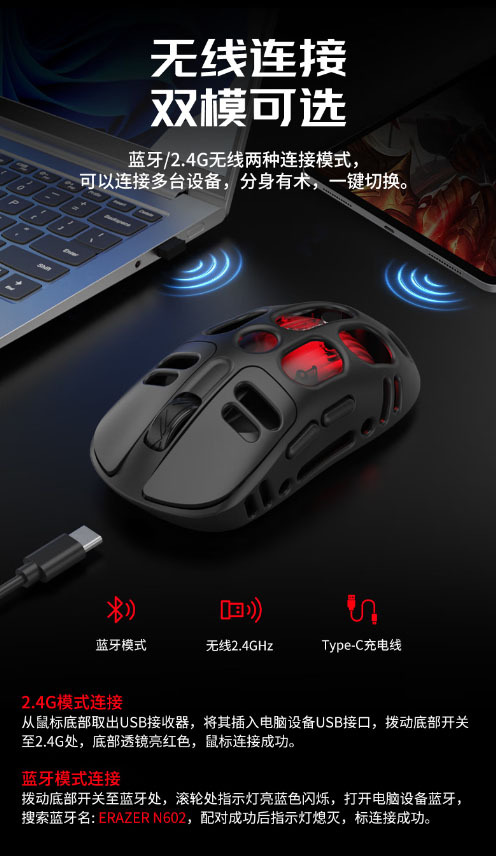 충전식 듀얼 모드 중공 기계 무선 블루투스 사무실 게임 마우스