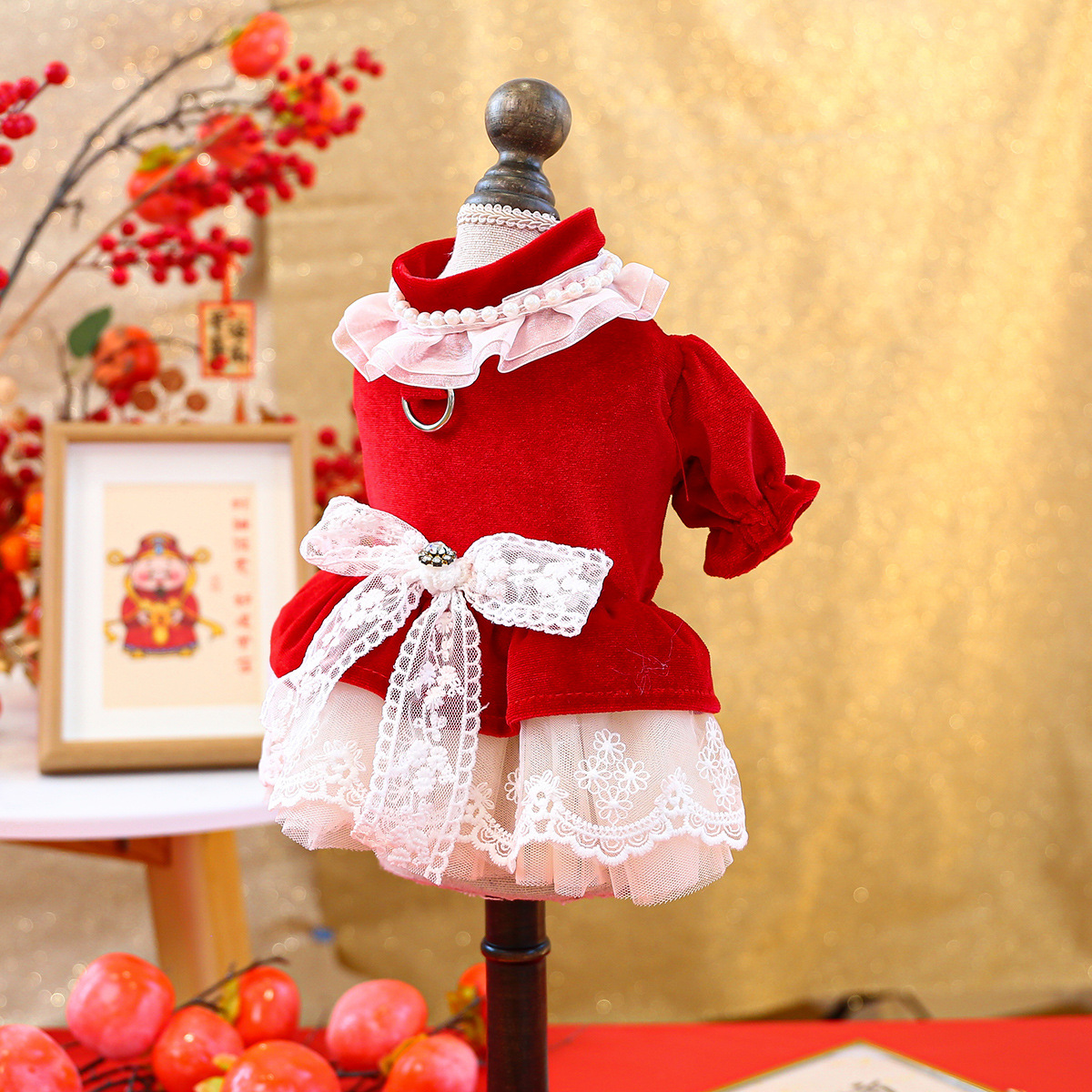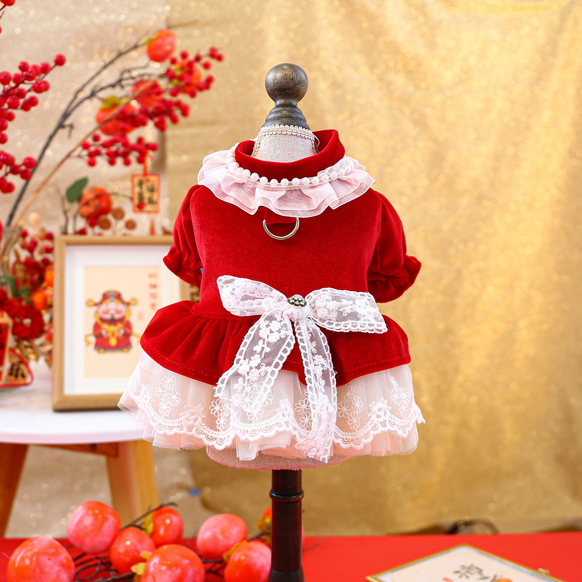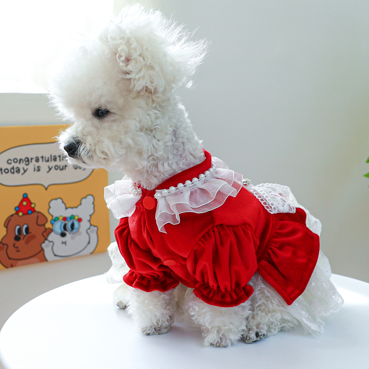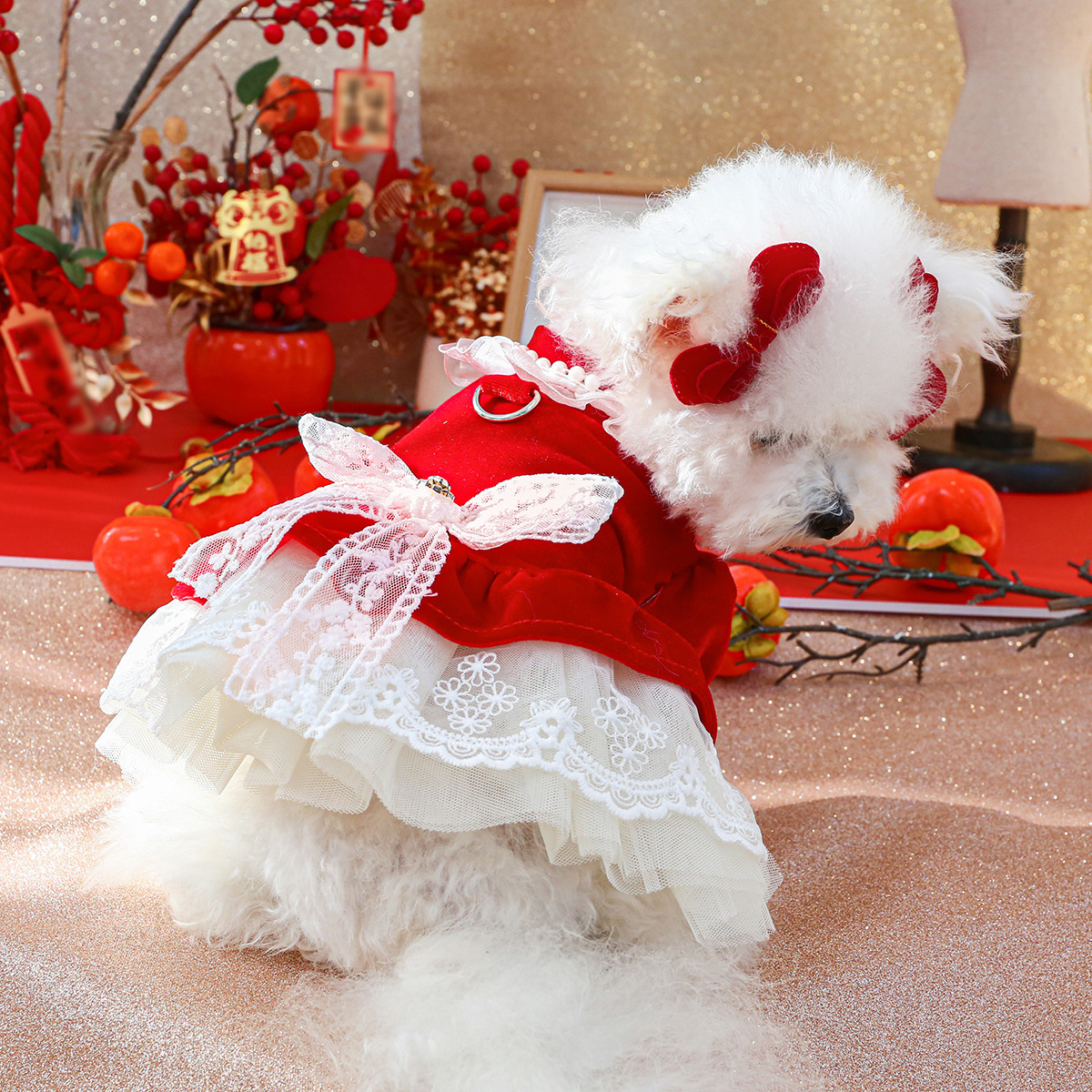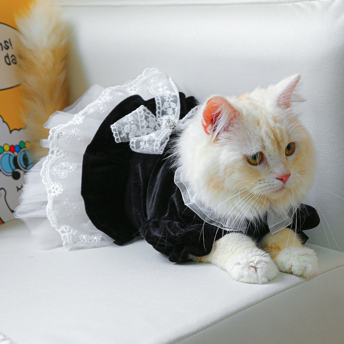 고양이 옷 애완동물 의류 고양이와 강아지 옷 봄 가을 벨벳 드레스 웨딩드레스 스커트 소형견스토어 가기