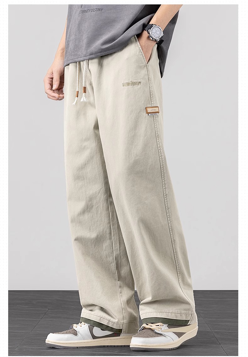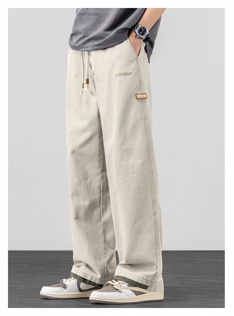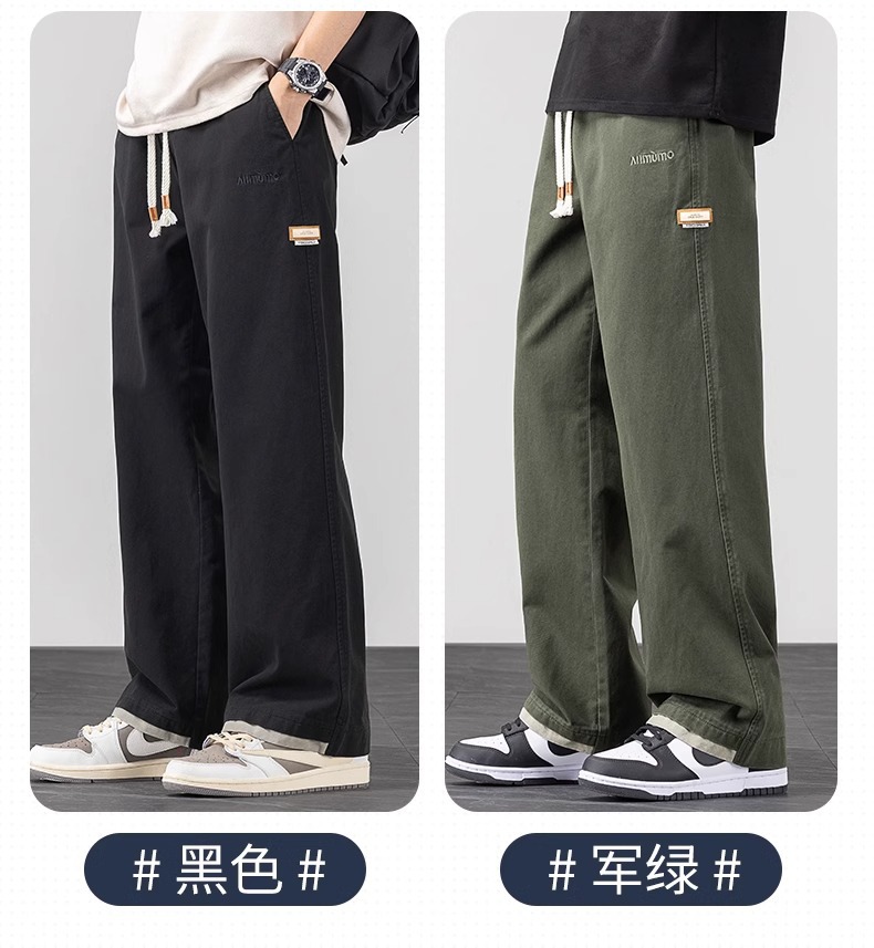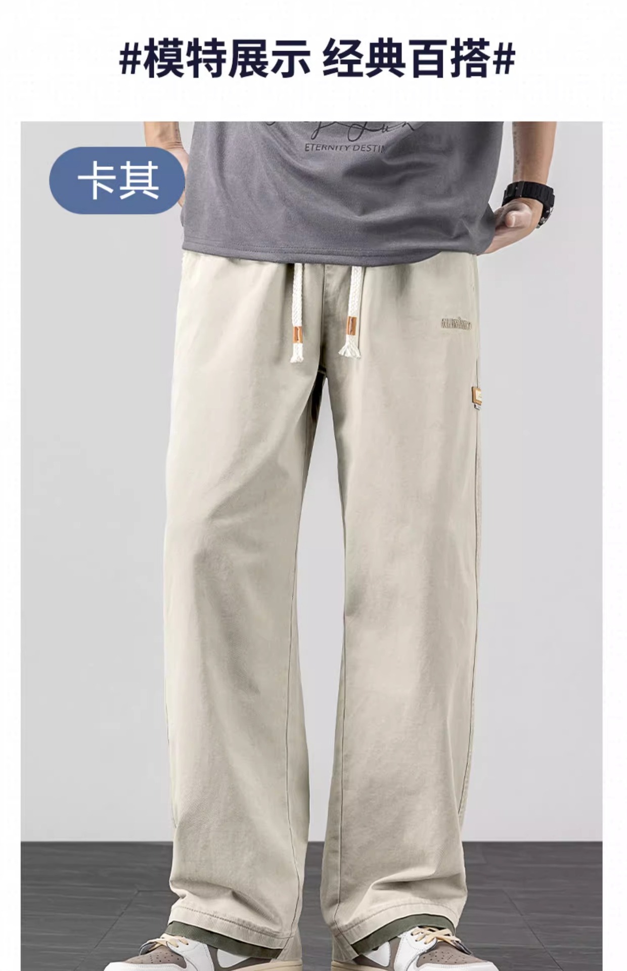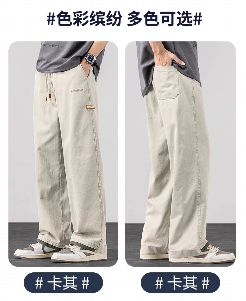 NASA 아메리칸 퓨어 코튼 캐주얼 팬츠 남성 트렌디 다재다능한 루즈 드레이프 와이드 레그 핸섬 스트레이트 스포츠 팬츠 여름스토어 가기