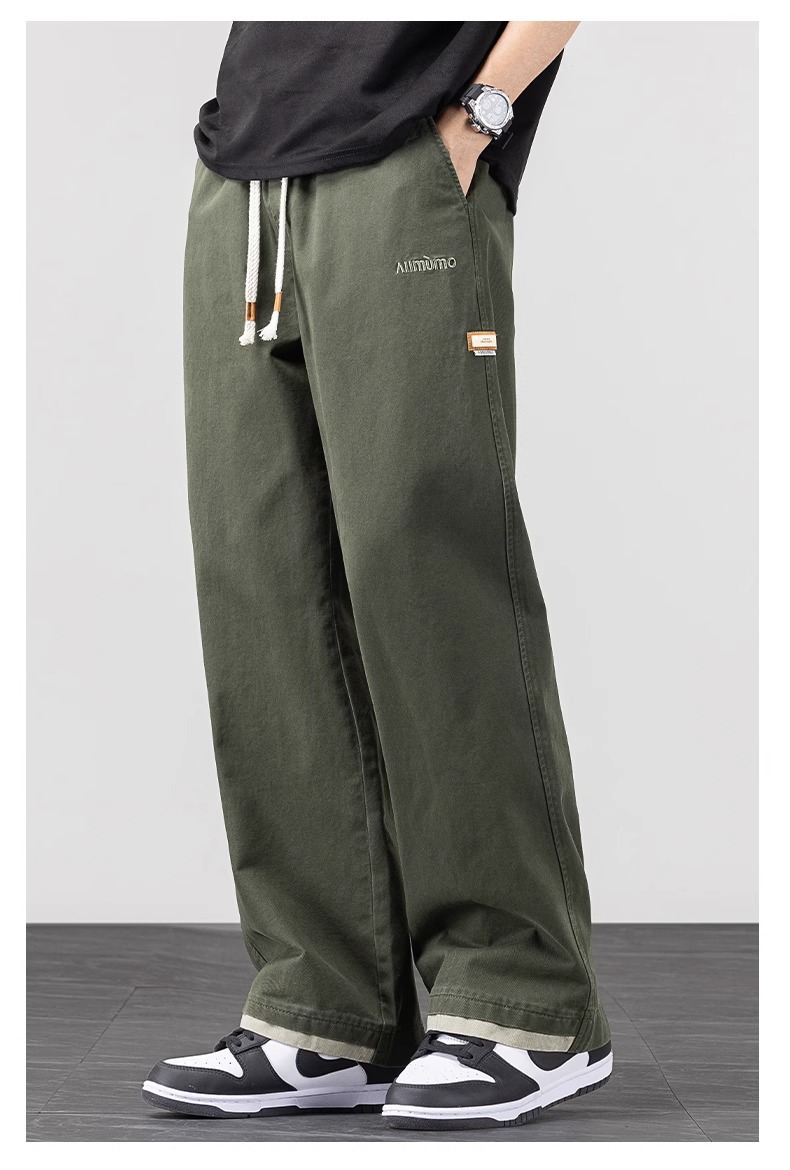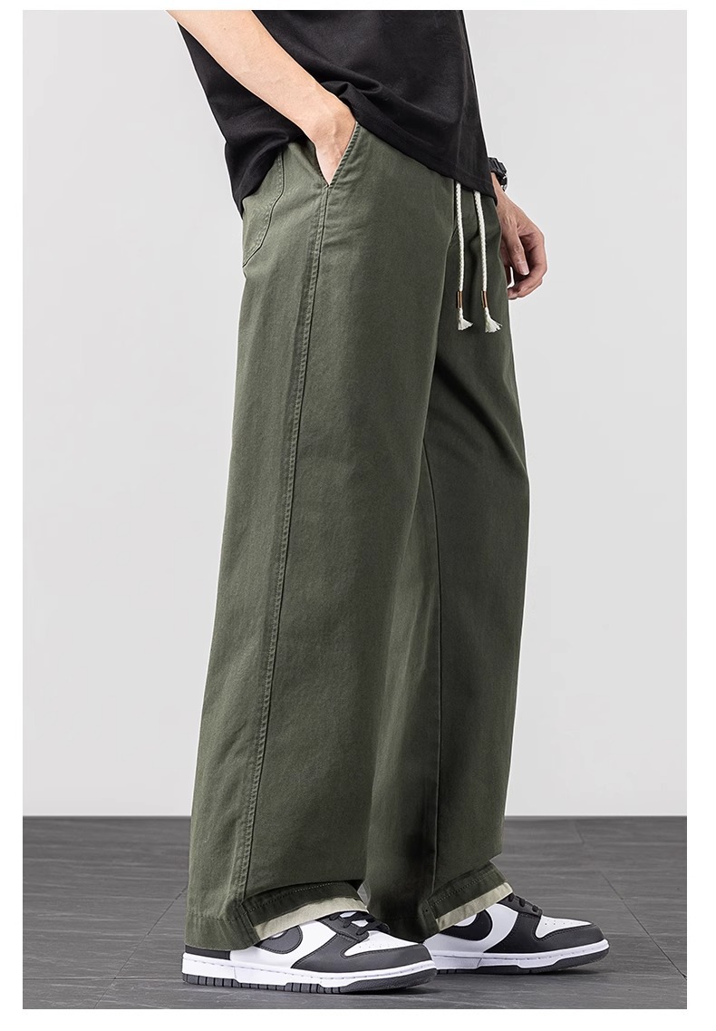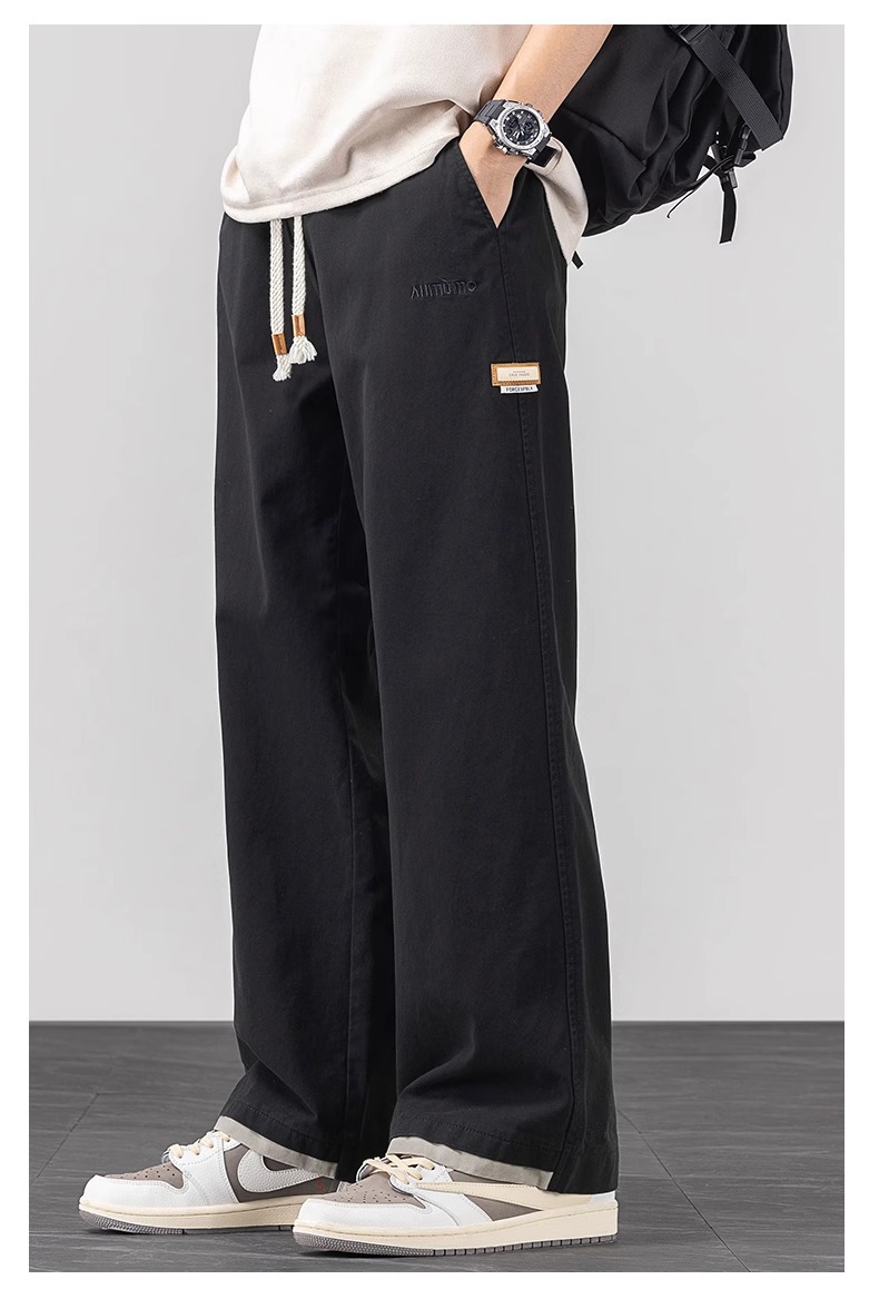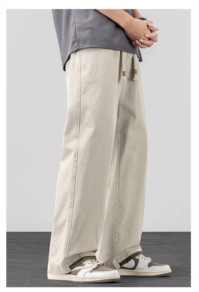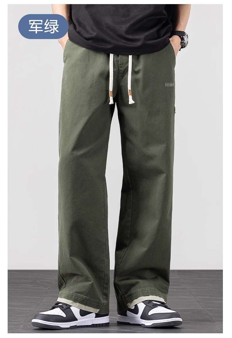 NASA 아메리칸 퓨어 코튼 캐주얼 팬츠 남성 트렌디 다재다능한 루즈 드레이프 와이드 레그 핸섬 스트레이트 스포츠 팬츠 여름스토어 가기