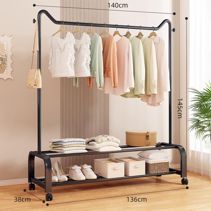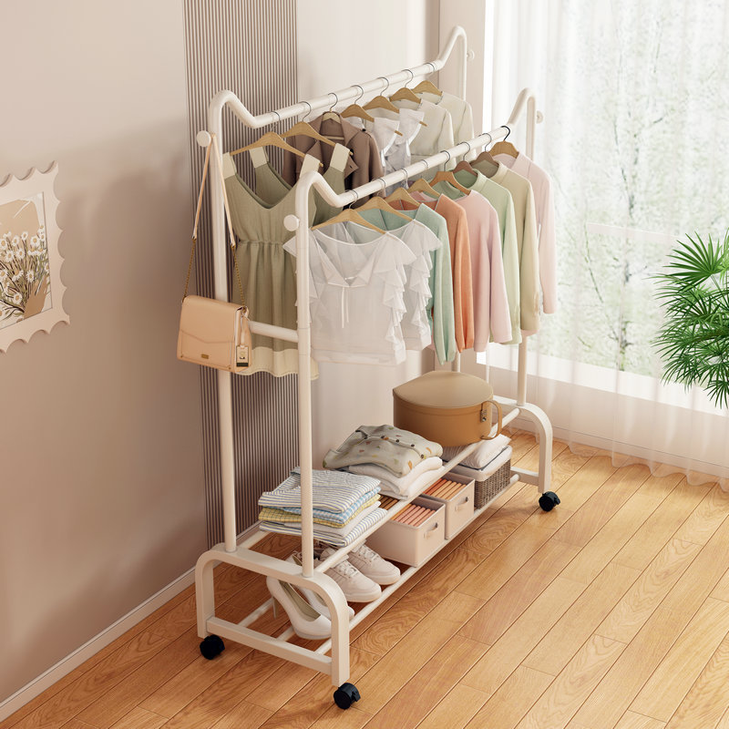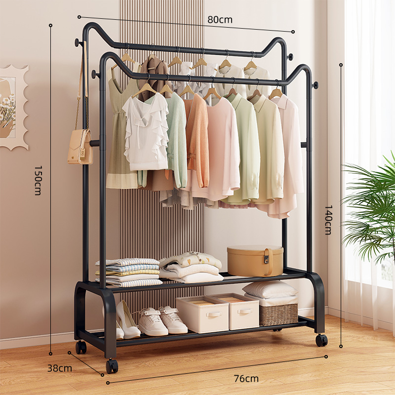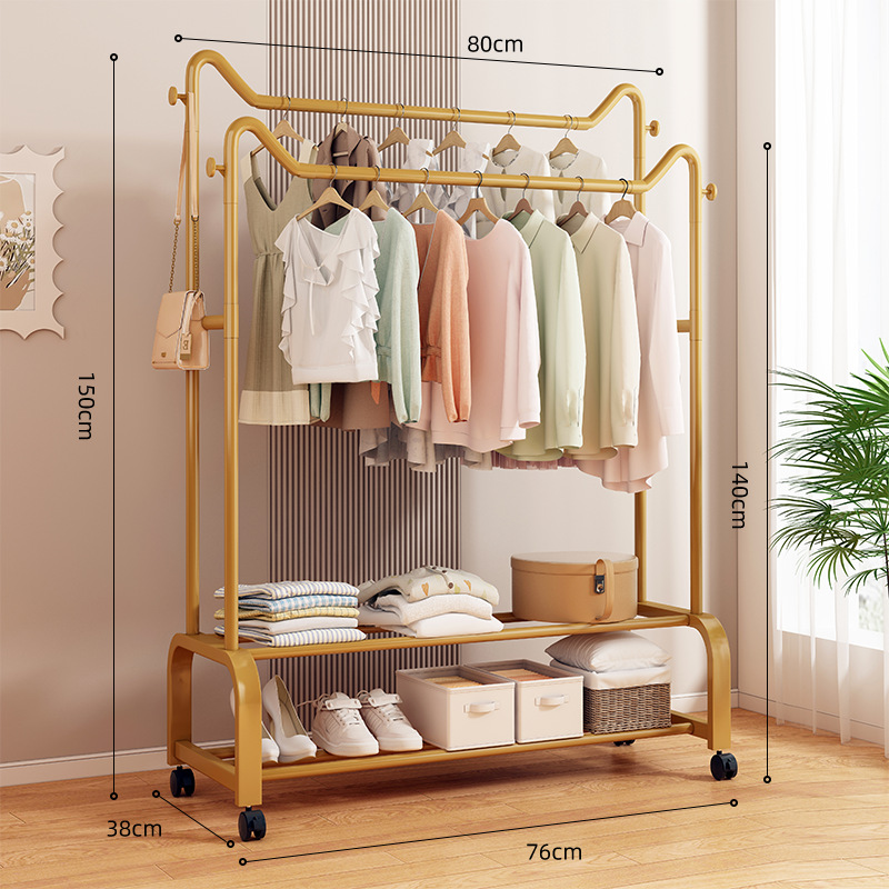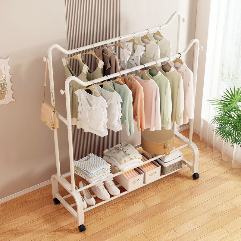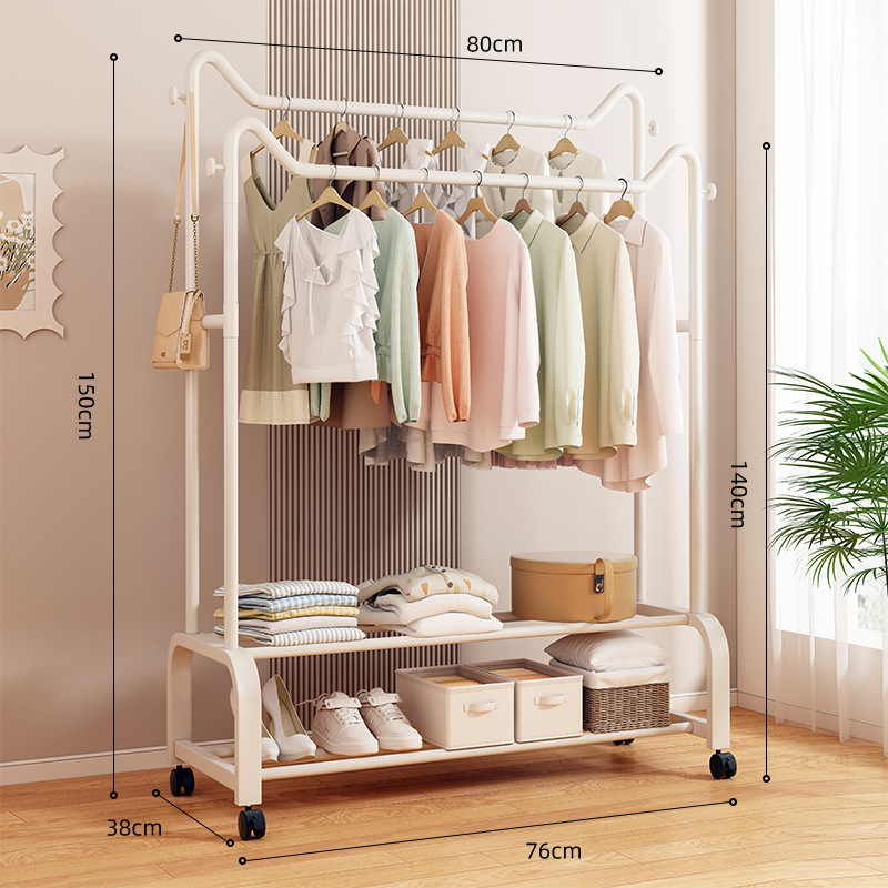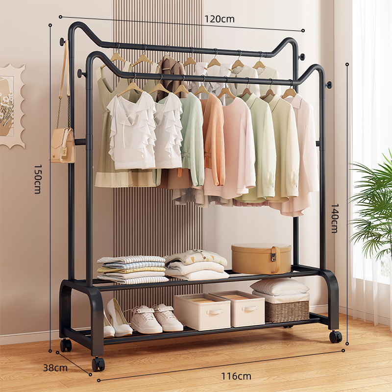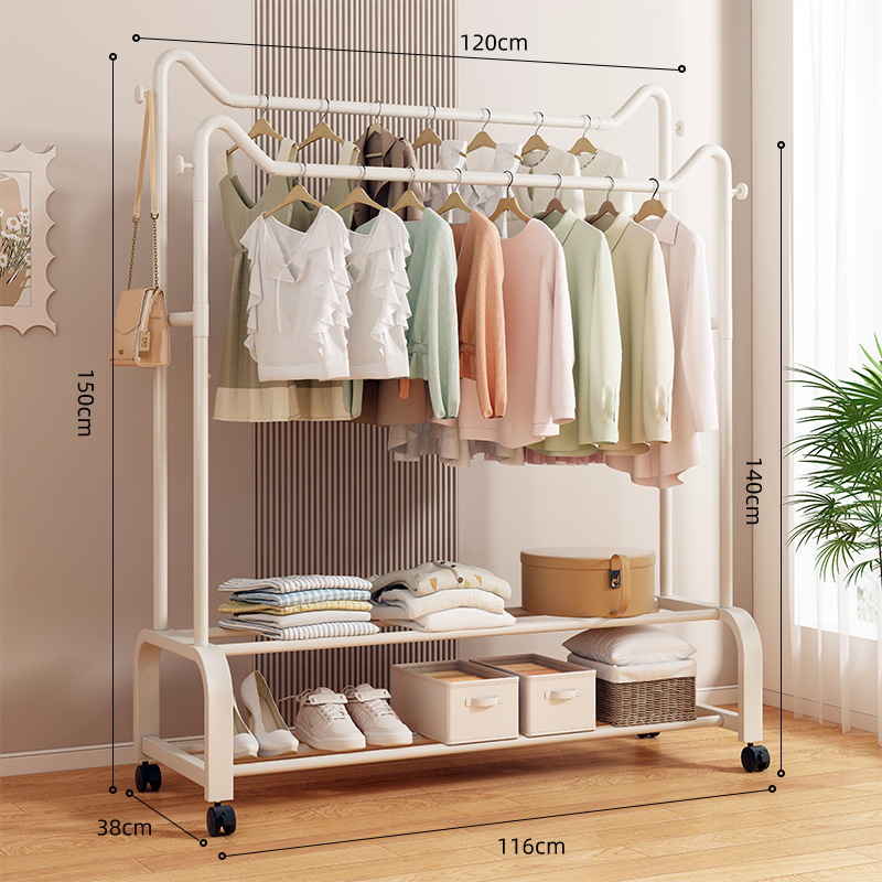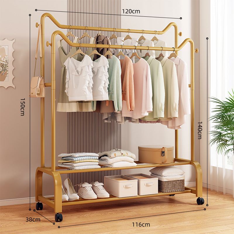 사랑스러운 고양이 귀 바닥 걸이 가정용 침실 코트 랙 발코니 의류 건조 랙 더블 레이어 보관 의류 건조 랙 랙스토어 가기