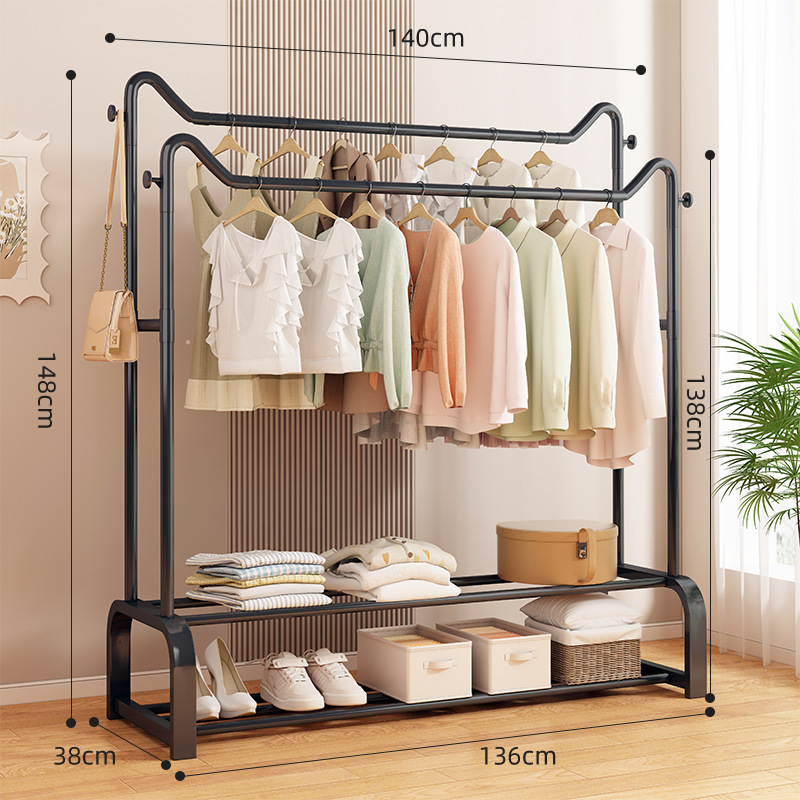 사랑스러운 고양이 귀 바닥 걸이 가정용 침실 코트 랙 발코니 의류 건조 랙 더블 레이어 보관 의류 건조 랙 랙