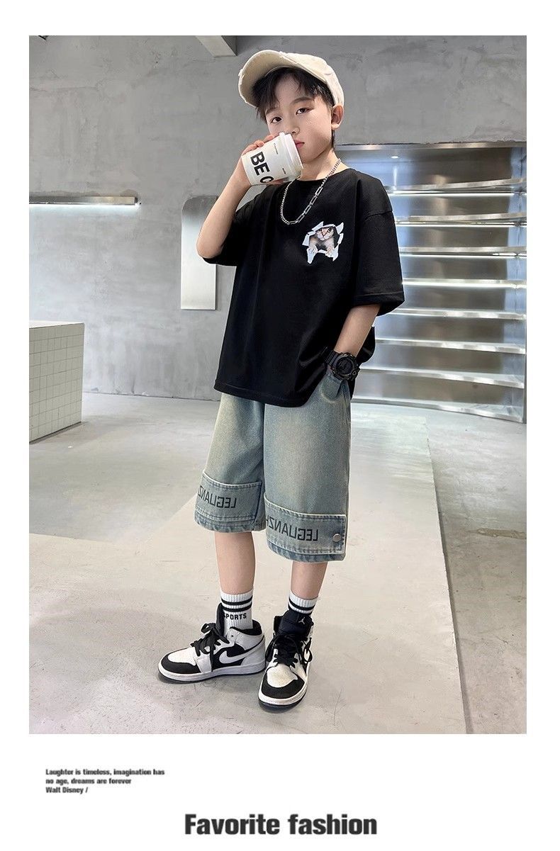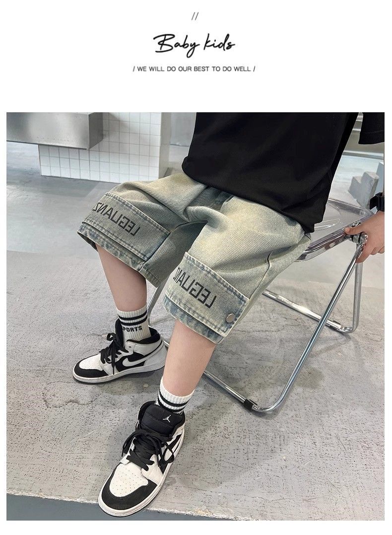 남학생 데님 반바지 여름 얇은 소년 여름 어린이 캐주얼 바지 중 및 대형 어린이 데님 바지 여름스토어 가기