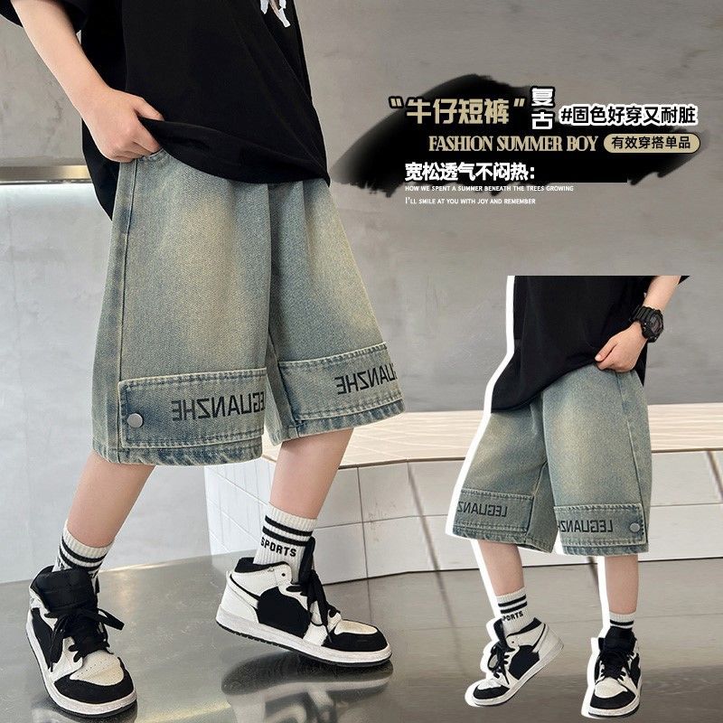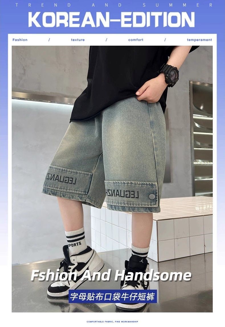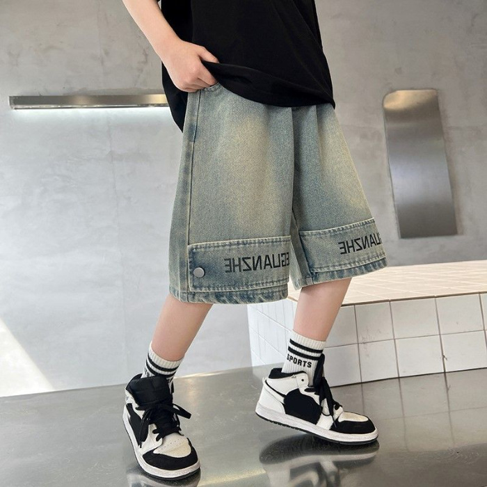 남학생 데님 반바지 여름 얇은 소년 여름 어린이 캐주얼 바지 중 및 대형 어린이 데님 바지 여름