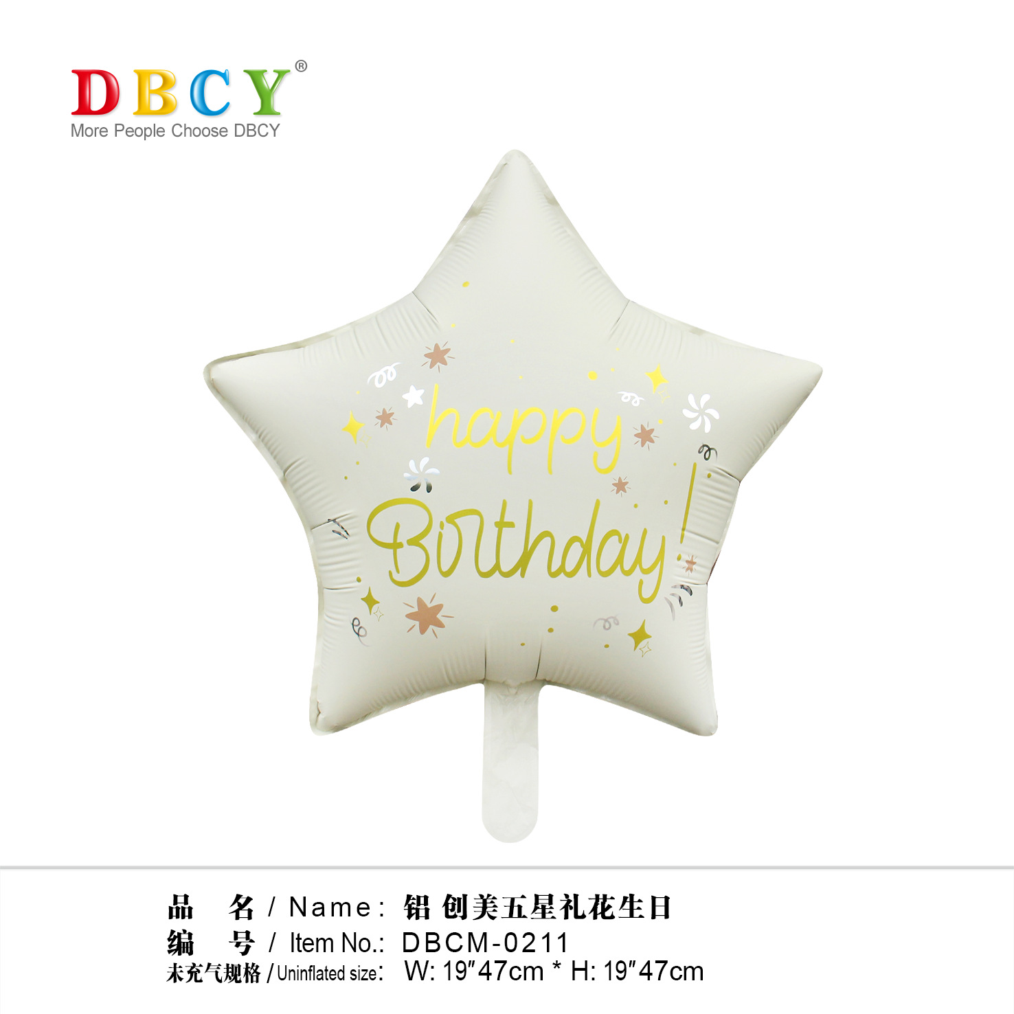 • 18inch 다섯개 별 불꽃 생일 - 흰색