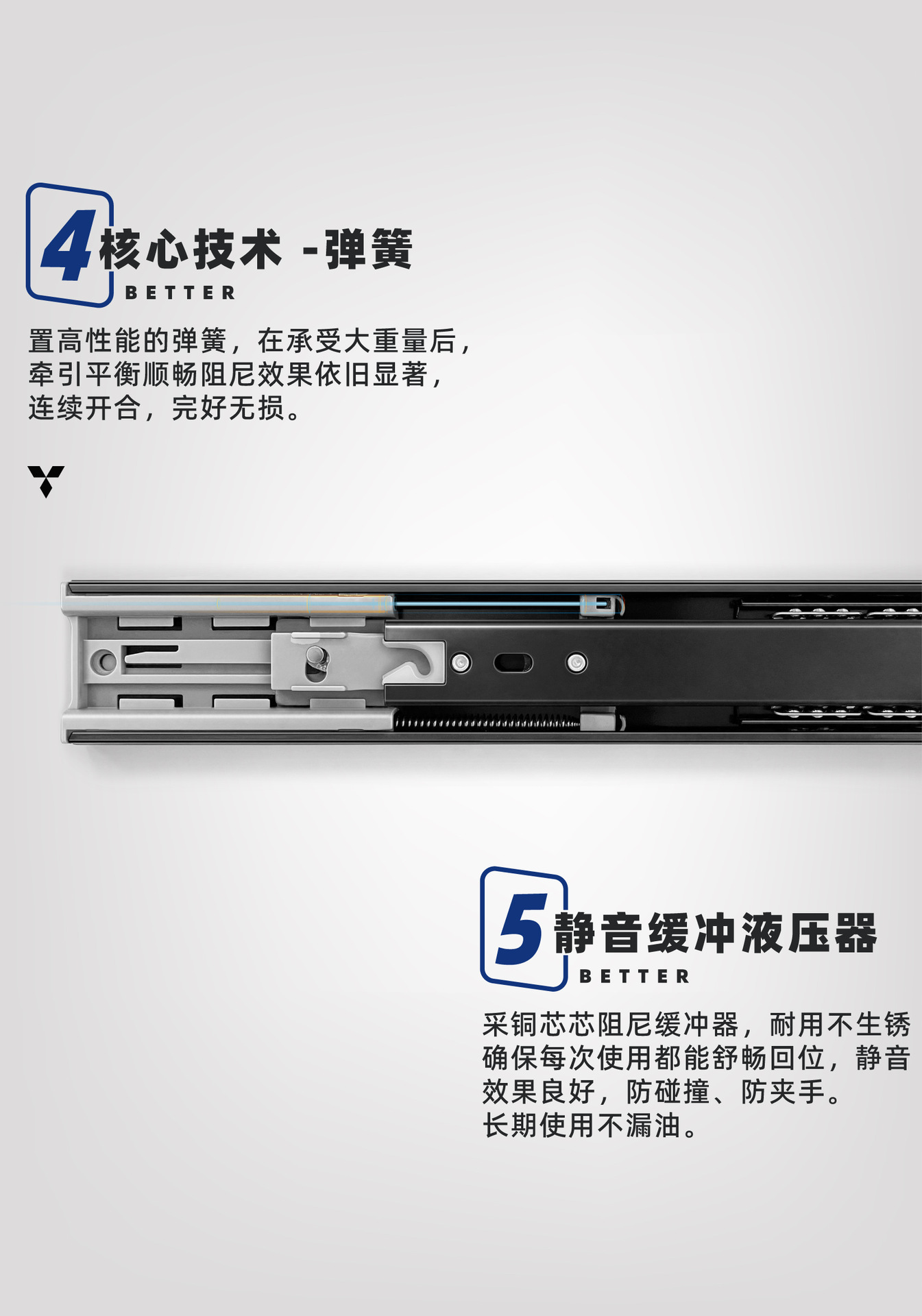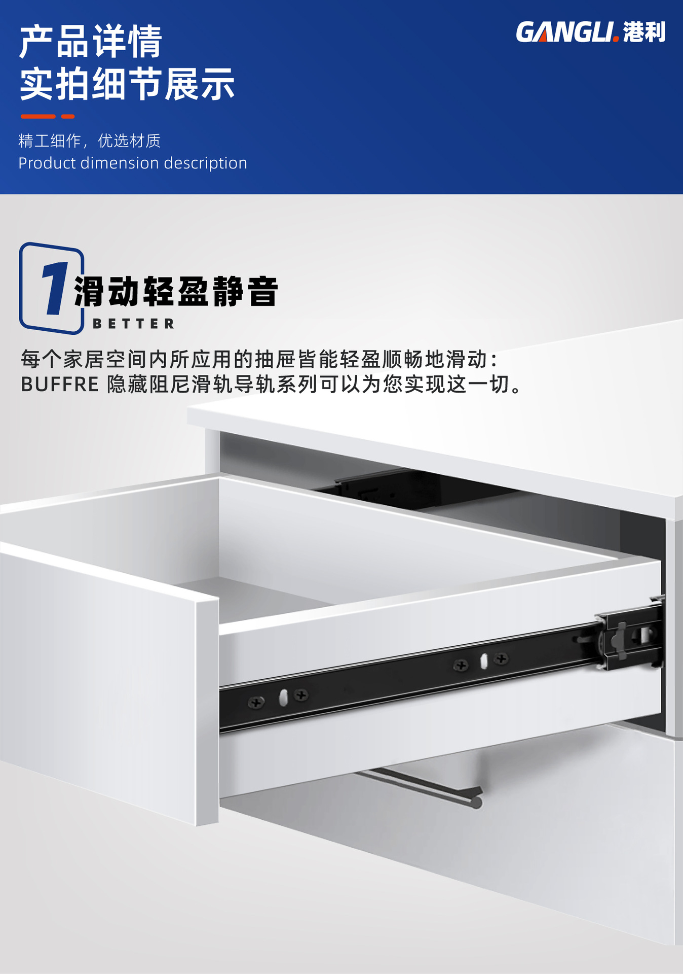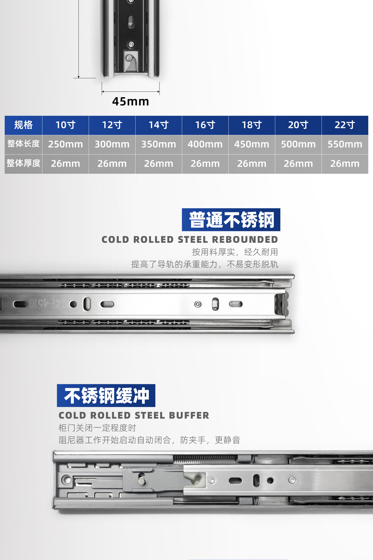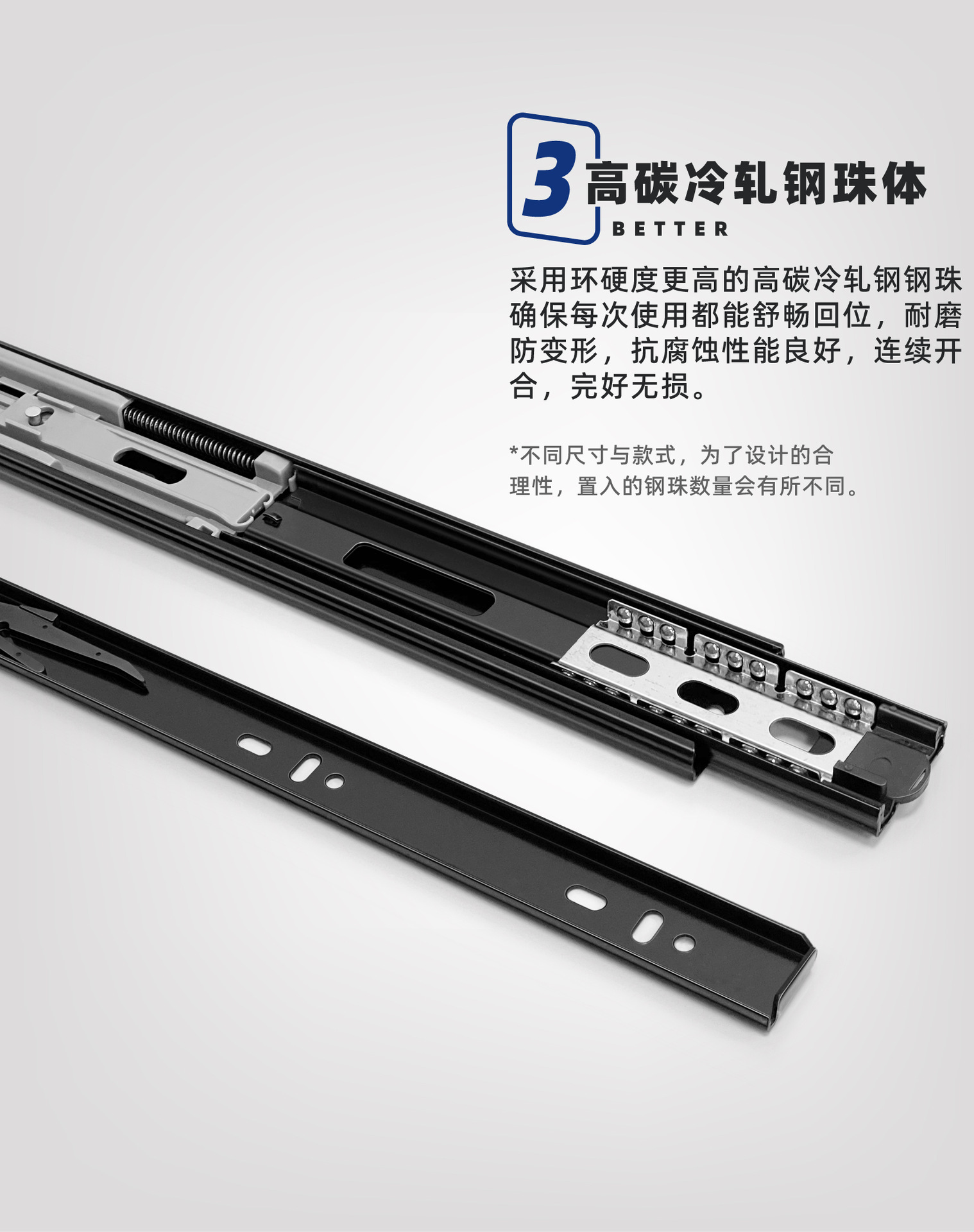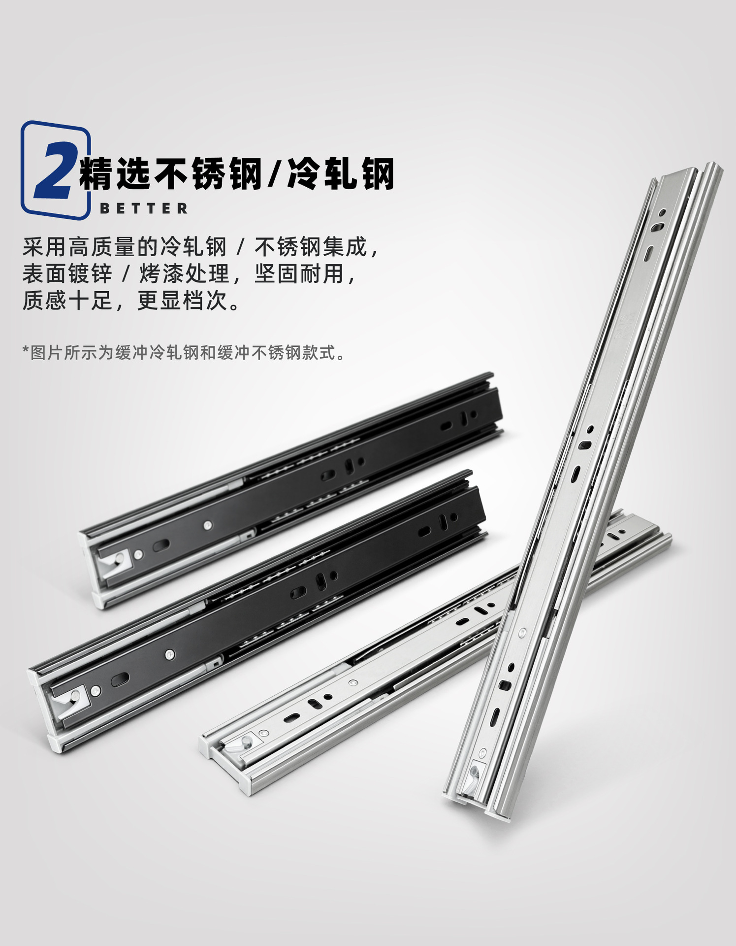 ✅공장 직접 댐핑 슬라이드 레일 펀치 프리 버퍼 리바운드 서랍 슬라이드 레일 스틸 볼 스테인레스 스틸 3 섹션 가이드 레일 배치