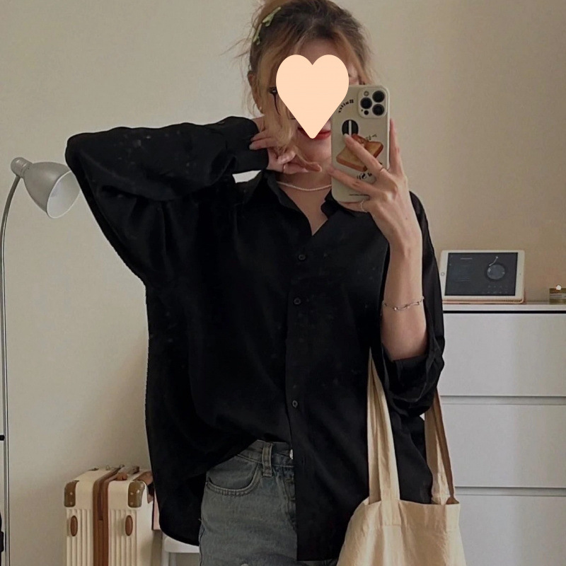 느슨한 디자인 센스 틈새 블랙 셔츠 여성 레트로 홍콩 스타일 게으른 스택 최고 고급 홍콩 스타일 화이트 셔츠스토어 가기
