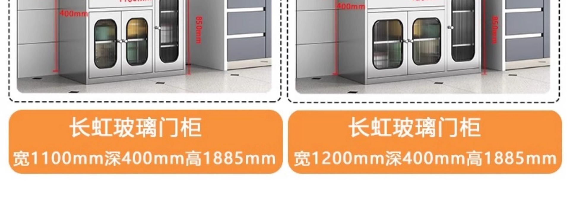 • 304 스테인레스 스틸 - 1100mm 너비 및 높이 캐비닛 강화 유리