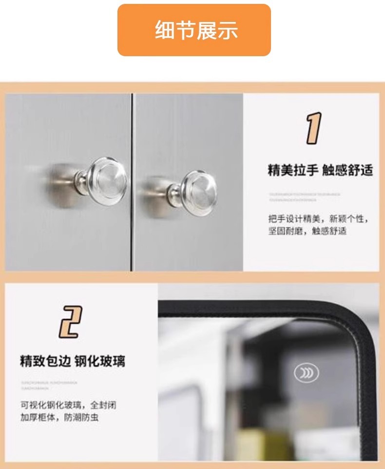 • 201 스테인레스 스틸 - 폭 800mm 캐비닛 강화 유리